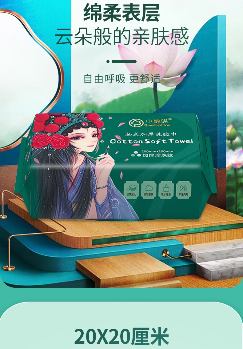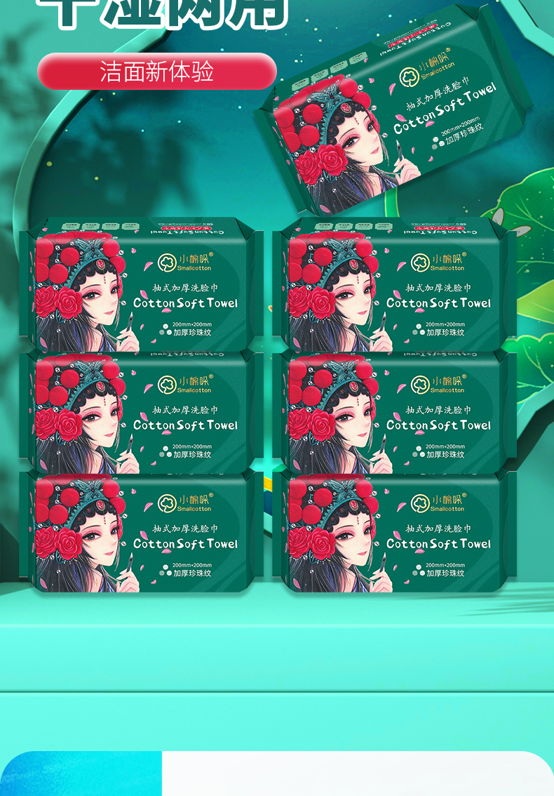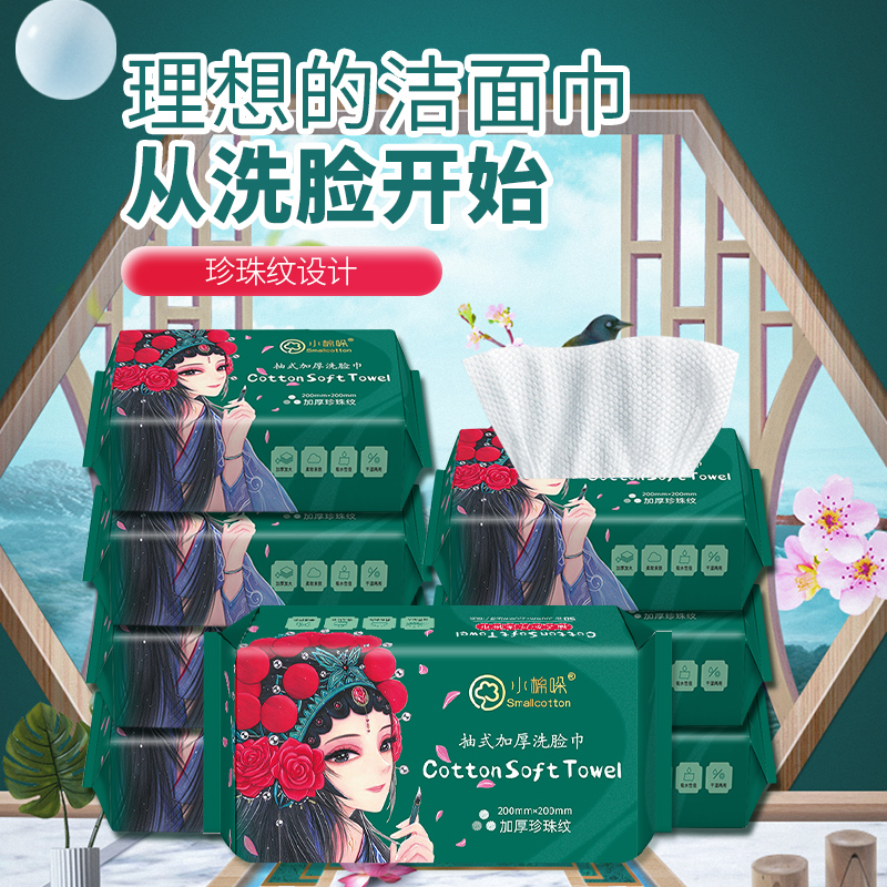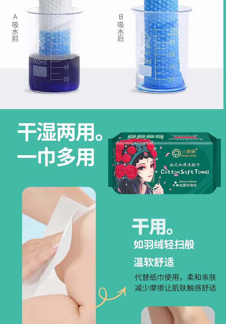 【到手6包】小棉哚加厚洗脸巾抽取式洁面巾干湿两用棉柔巾亲肤柔软