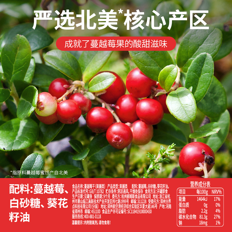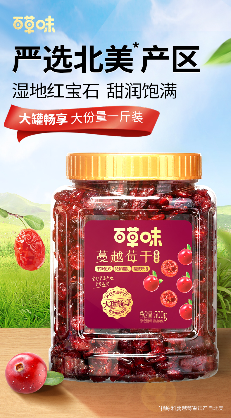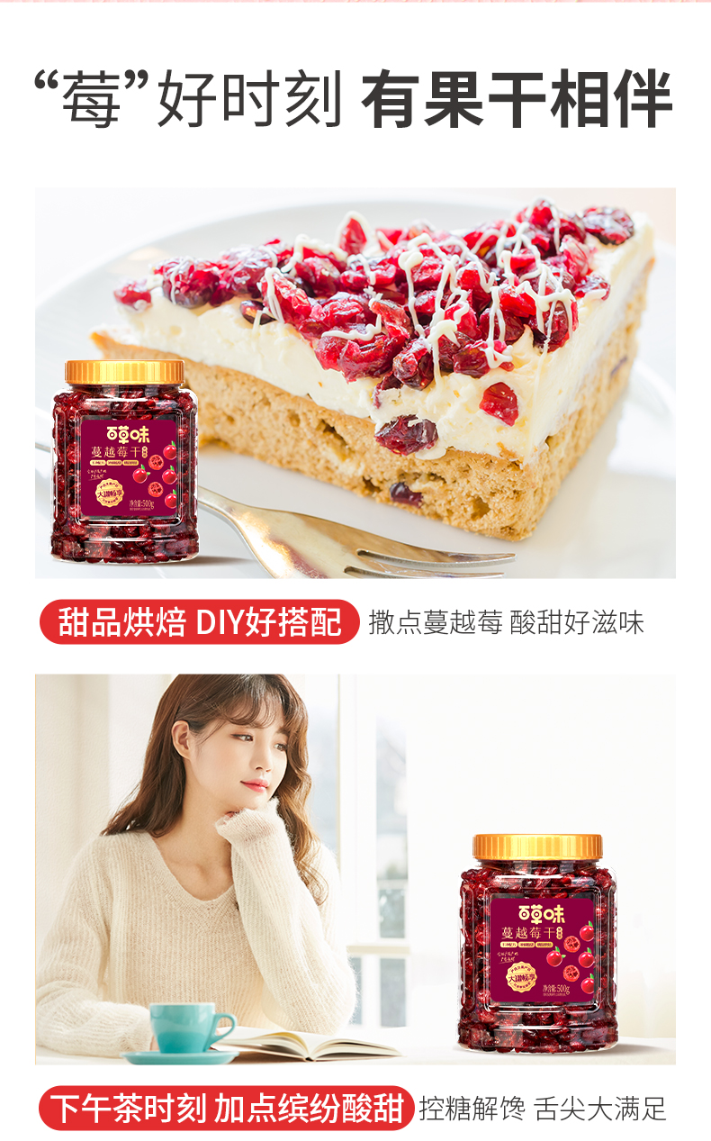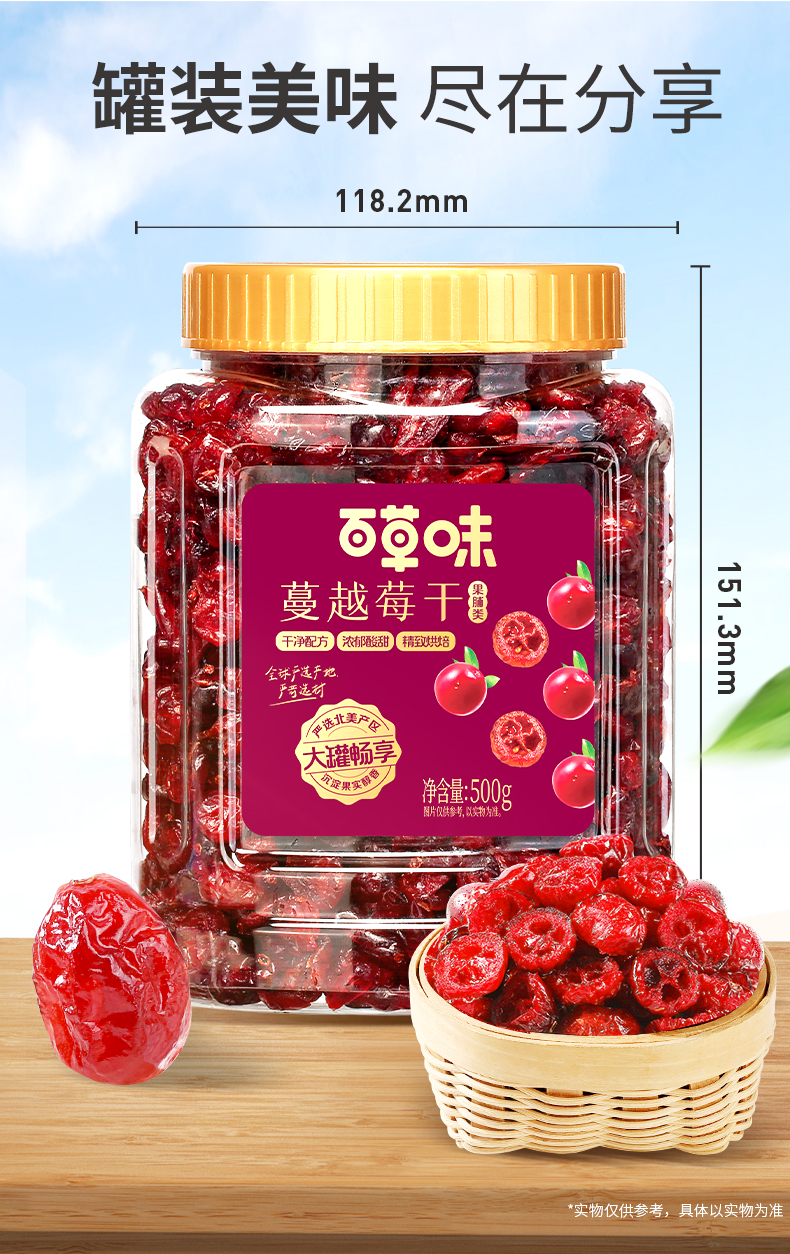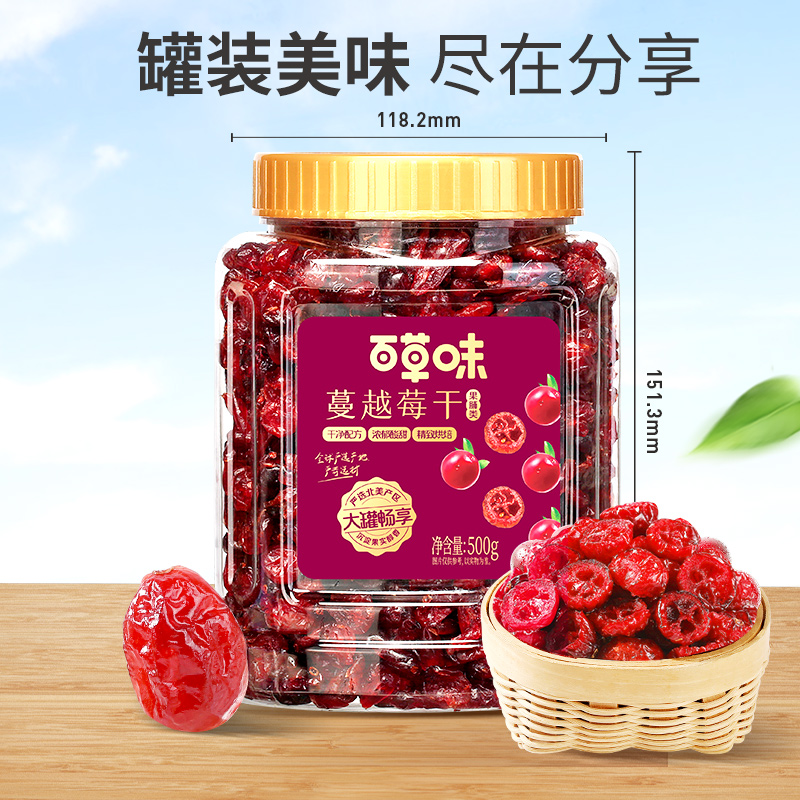 百草味罐装蔓越莓干500g水果干蜜饯果脯休闲健康办公室解馋小零食