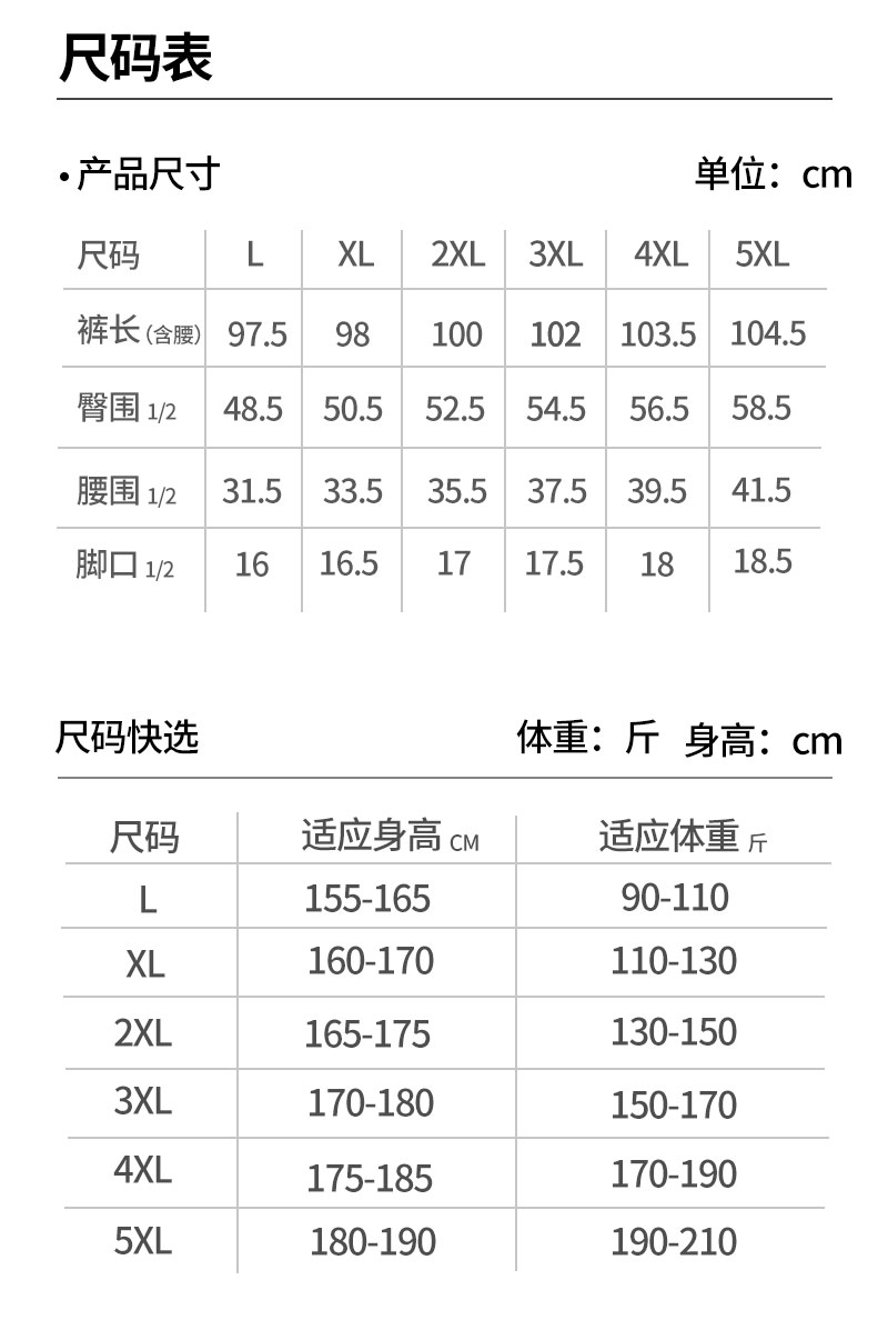 - ¥149.90卡其+灰色 [2条装],5XL(190-210)