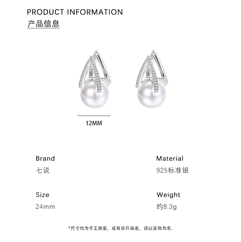 - ¥99.00 【12MM珠珠】施家珠马蹄耳扣,925/纯银
