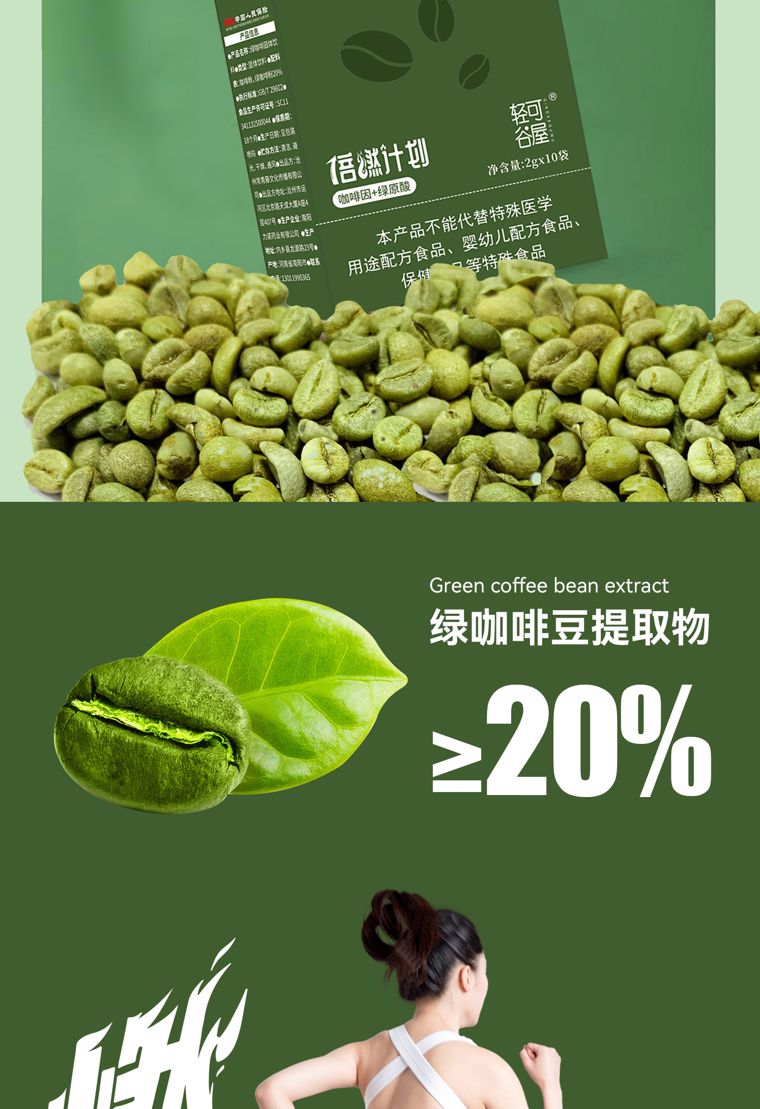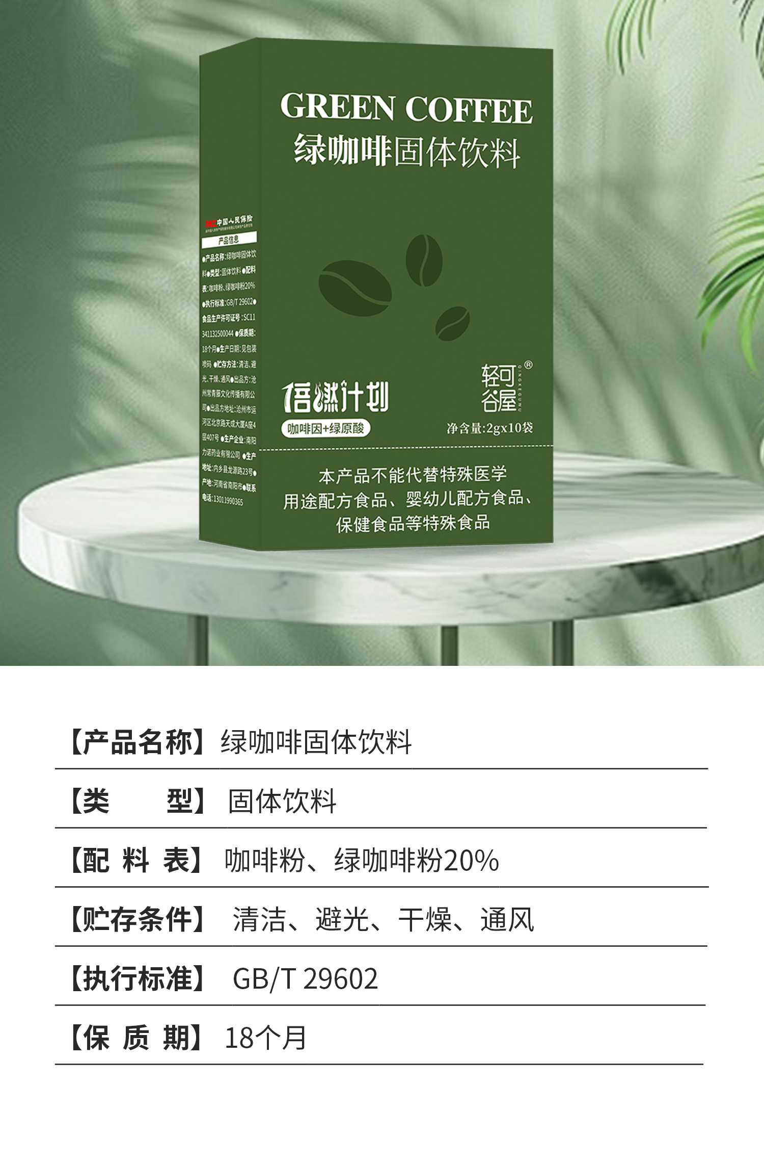 【轻可谷屋】绿原酸绿咖啡大餐搭档 速溶咖啡 2g*10条/盒
