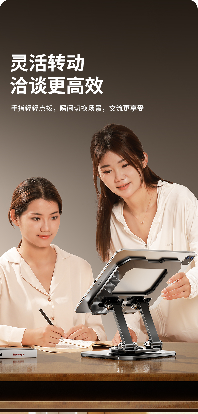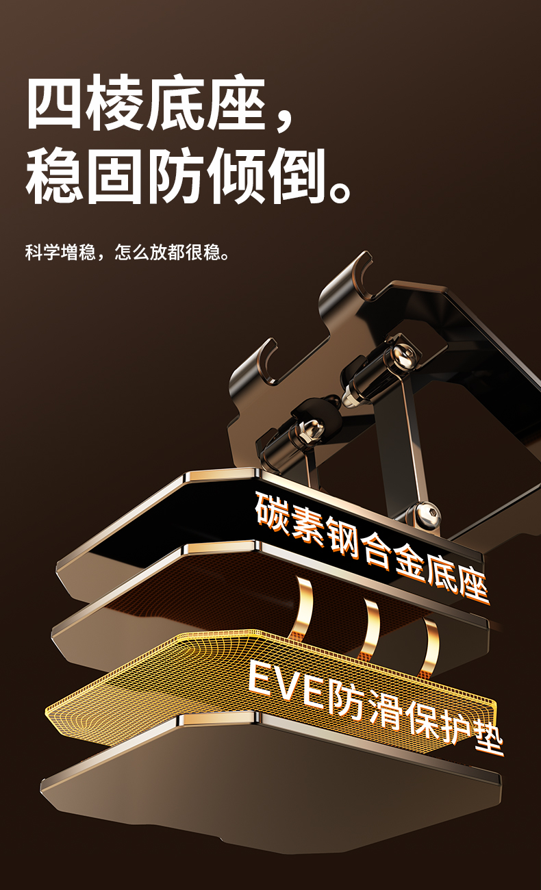 【曜石黑】升级双杆支撑*360°旋转/折叠-手机/平板通用