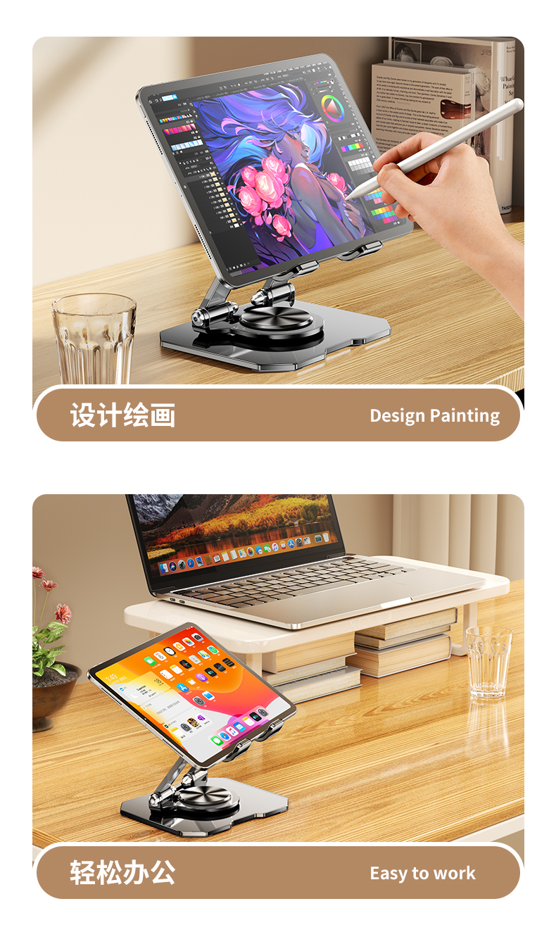 【皓月银】升级双杆支撑*360°旋转/折叠-手机/平板通用