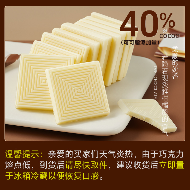 40%可可脂白巧克力丝滑巧克力大板块盒装办公室零食