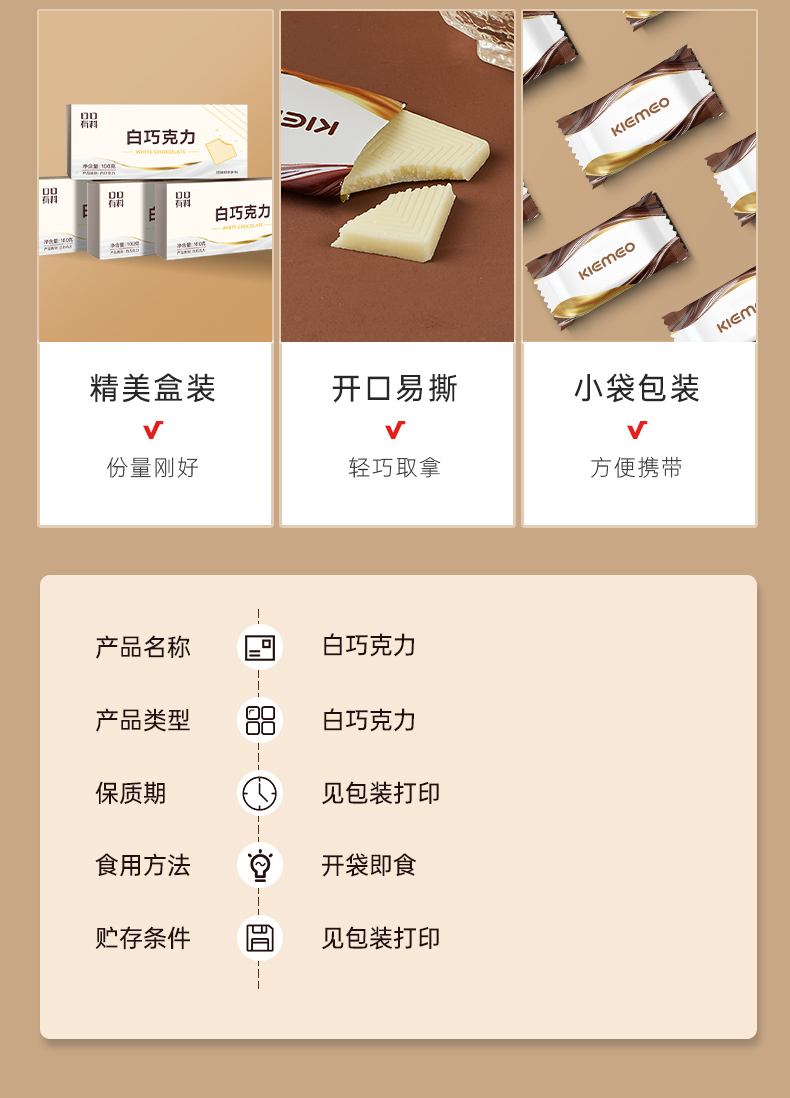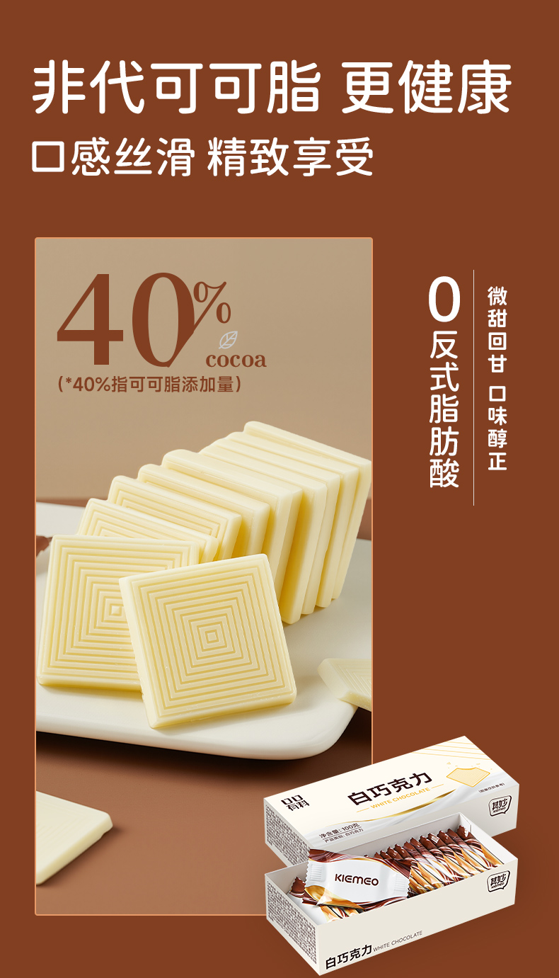 其妙40%纯可可脂白巧克力奶香丝滑巧克力烘焙甜品休闲零食品小吃