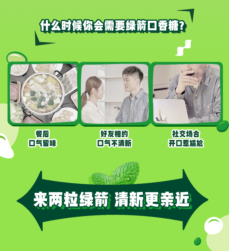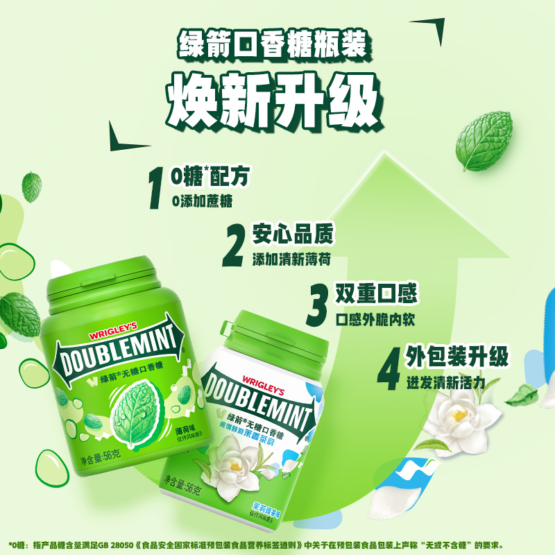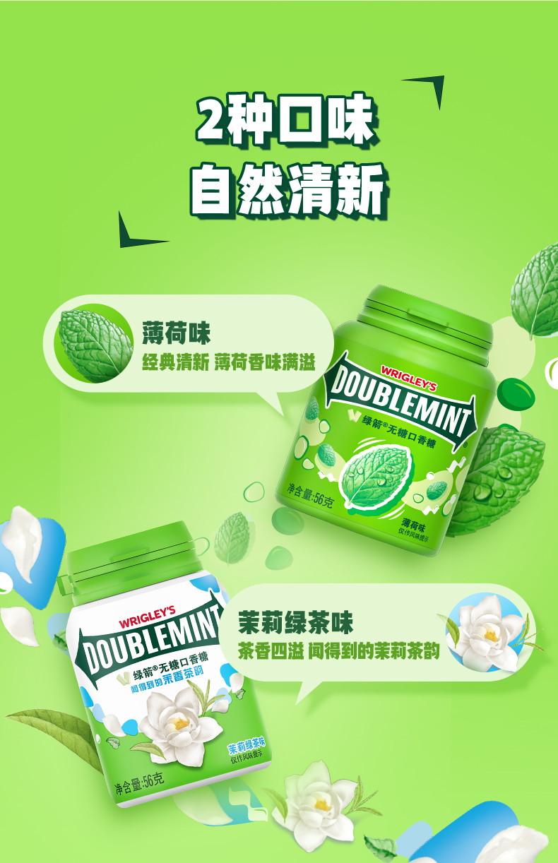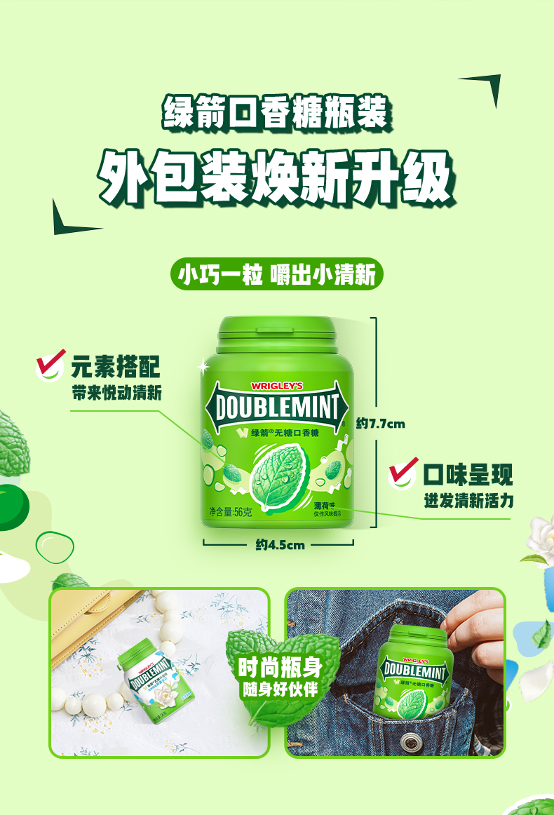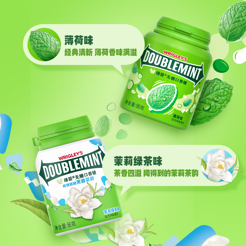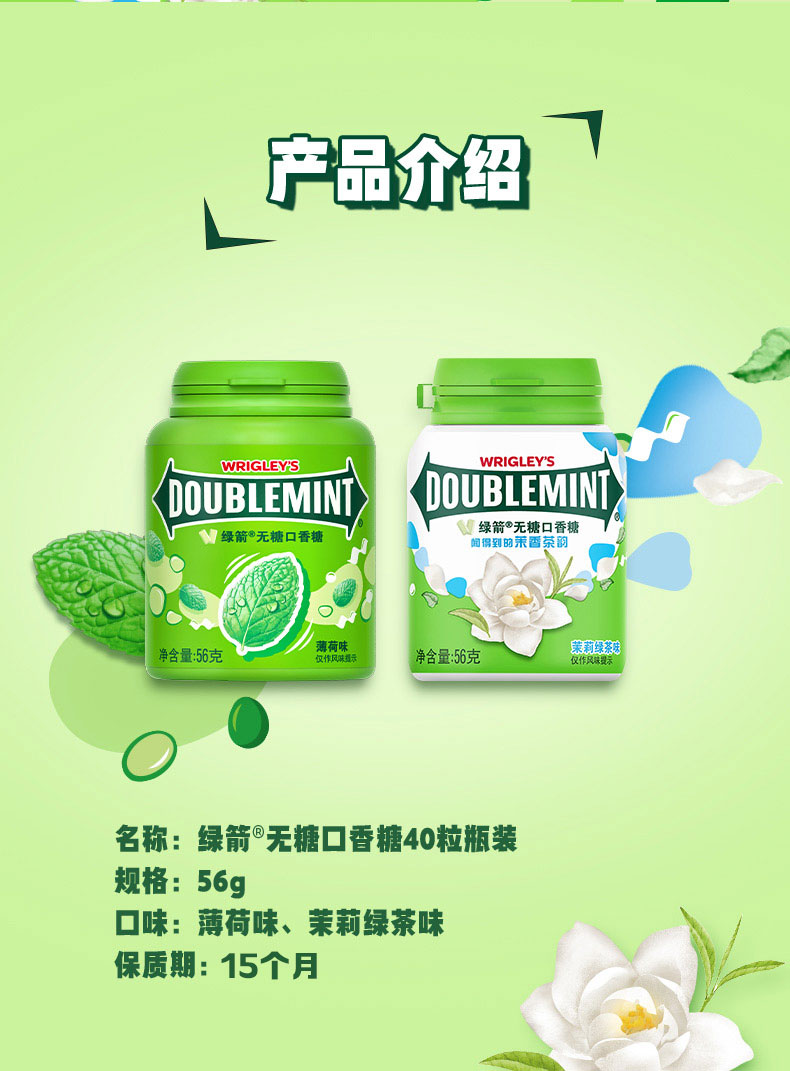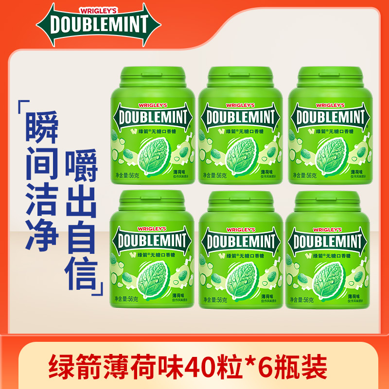 绿箭口香糖绿茶薄荷约40粒6瓶口香糖清新口气办公室零食网红糖SC