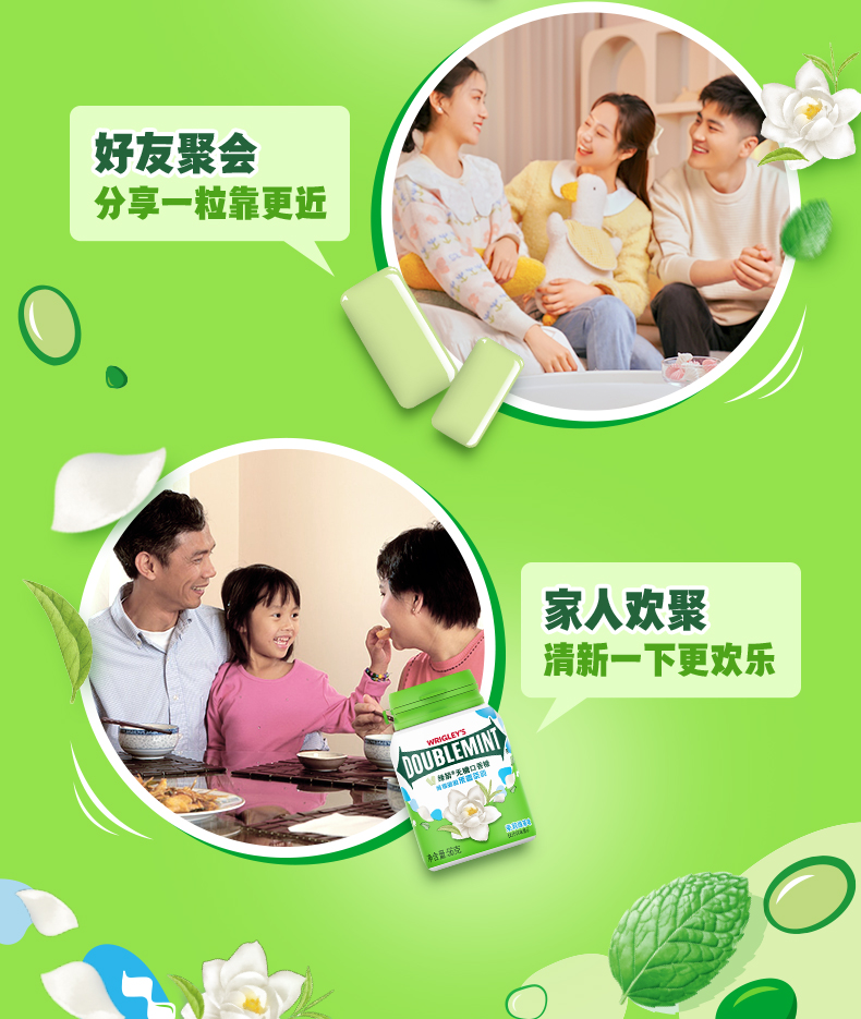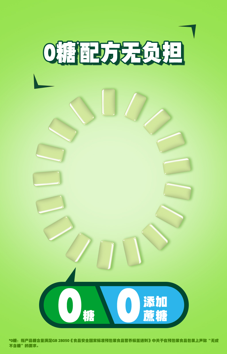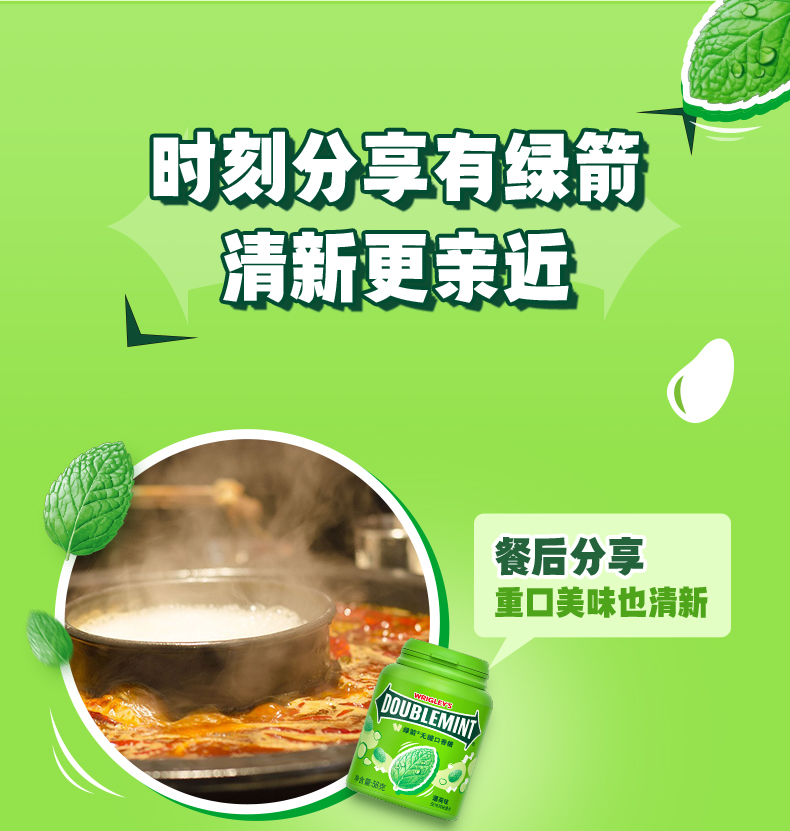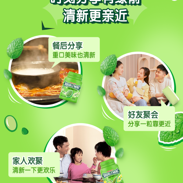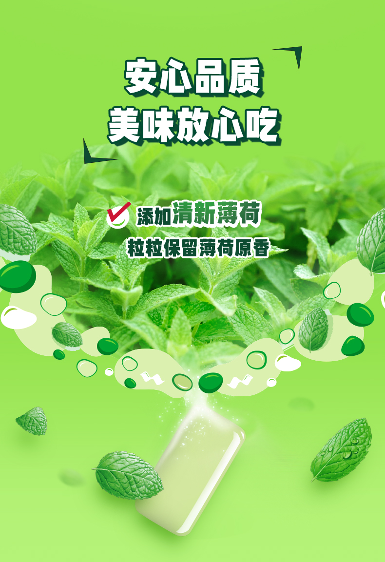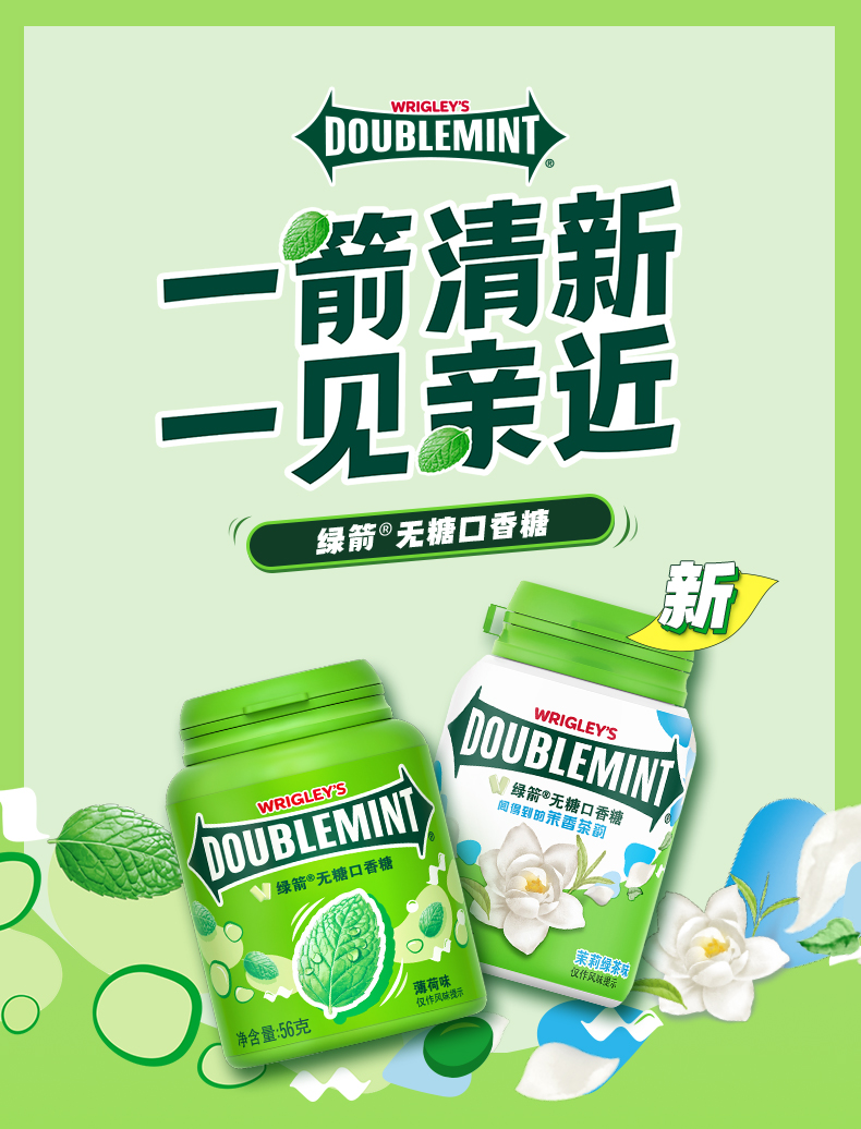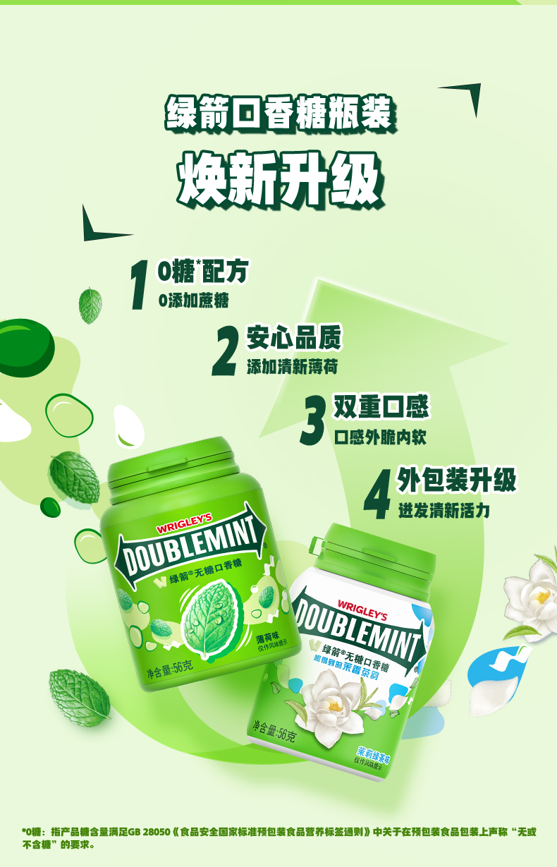 绿箭口香糖绿茶薄荷约40粒6瓶口香糖清新口气办公室零食网红糖SC