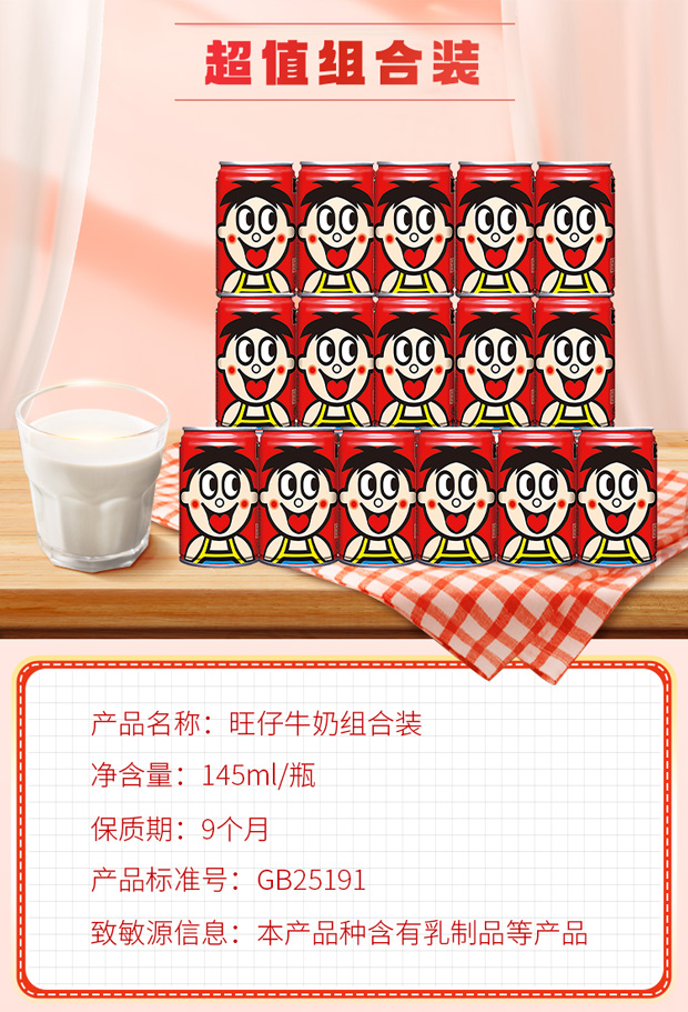 - ¥23.06 旺仔牛奶经典铁罐装145ml*8瓶,1ml