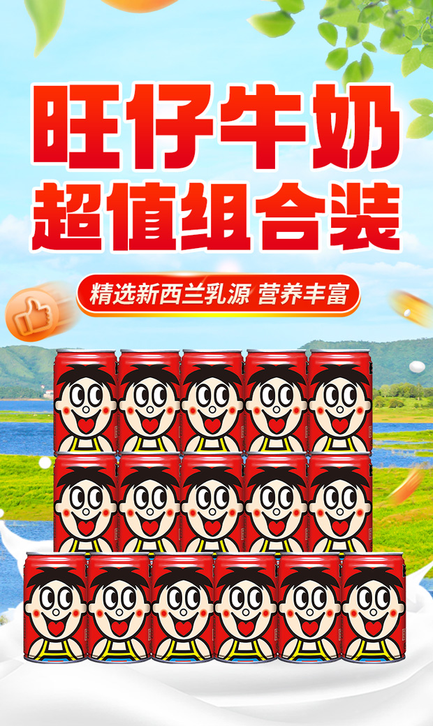 - ¥18.75 旺仔牛奶经典铁罐装145ml*6瓶,1ml