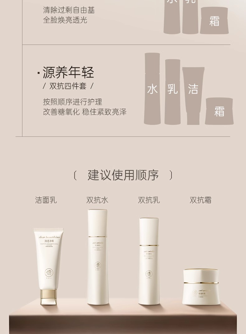- ¥99.90双抗润肤面霜[50g*2罐]+双抗精华面膜[28ml*7片]+水乳旅行装[4颗*1件]