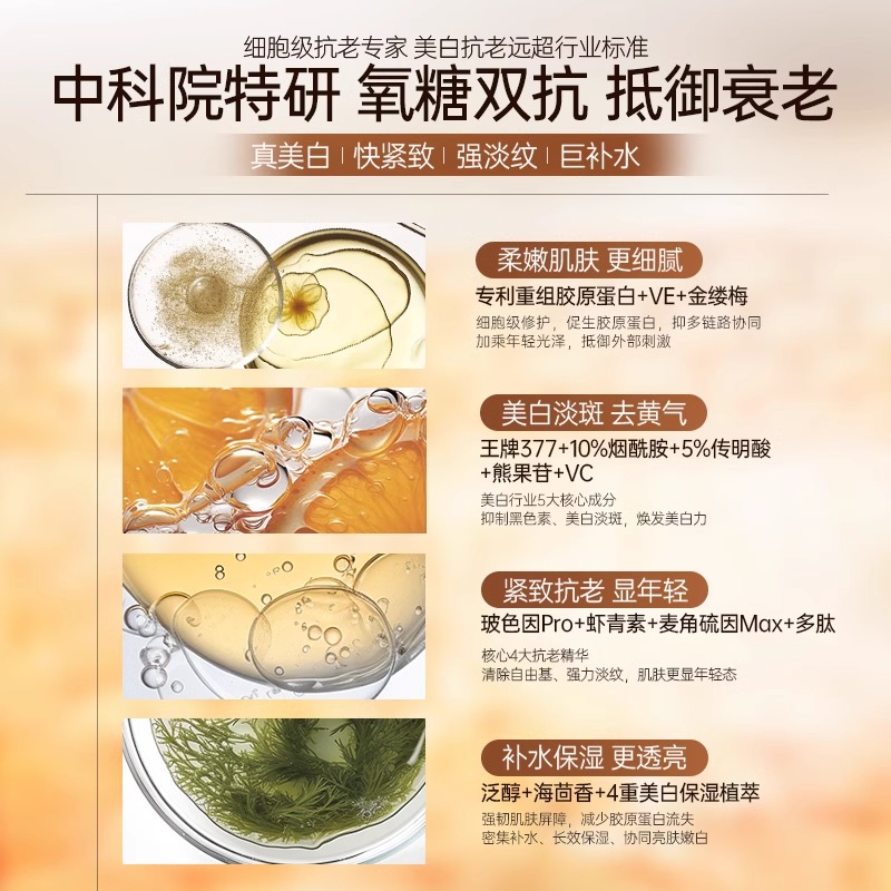 - ¥69.90双抗润肤面霜[50g*1罐]+双抗精华面膜[28ml*7片]+水乳旅行装[4颗*1件]