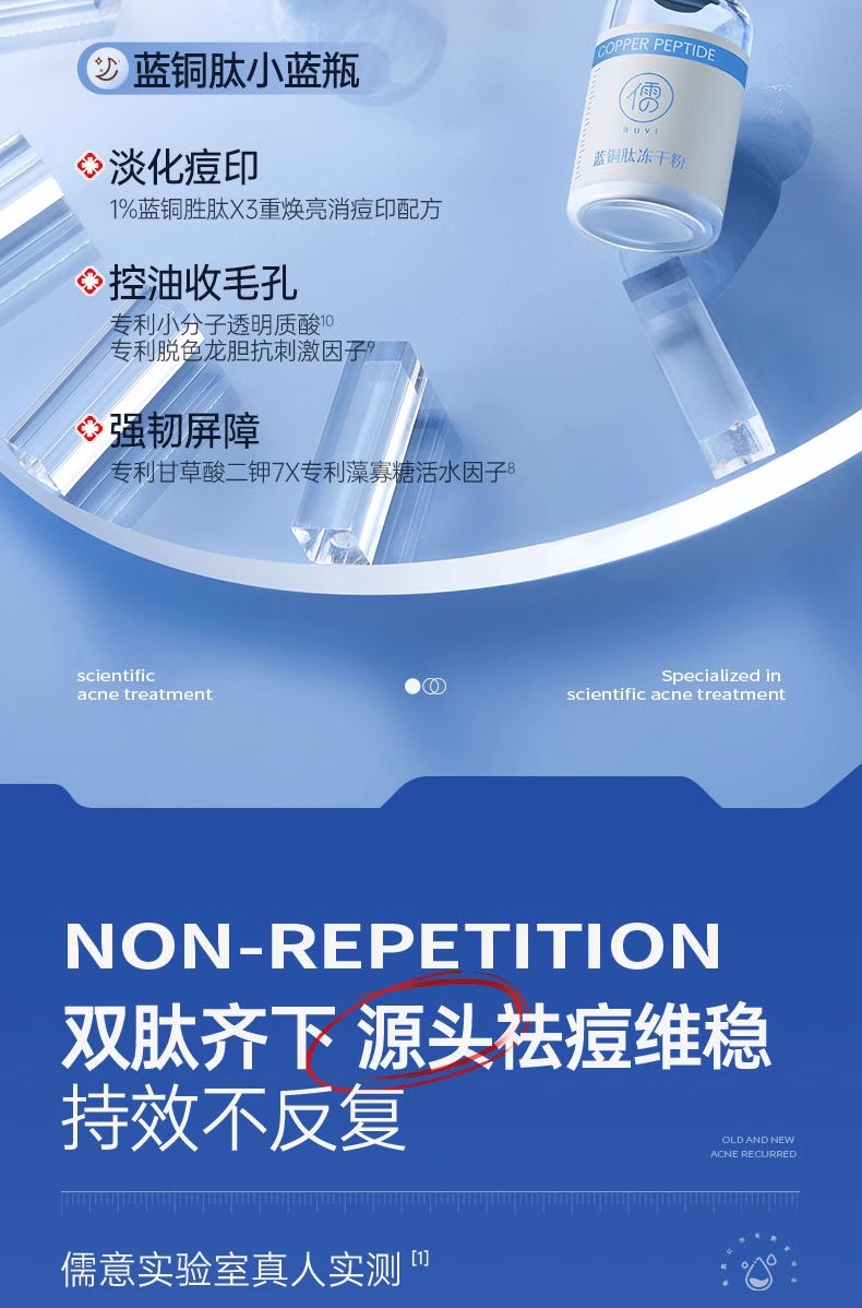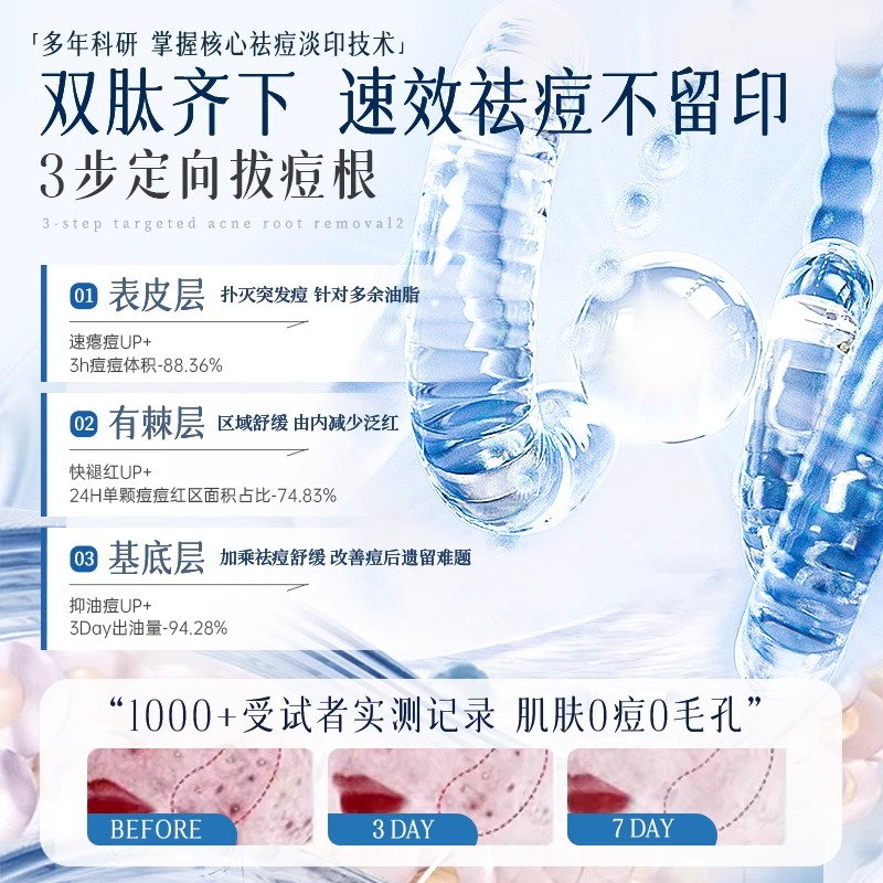 - ¥228.00 适用重度痘痘痘印⭐寡肽蓝铜肽冻干粉12支*3盒+水杨酸面膜25ml*3片