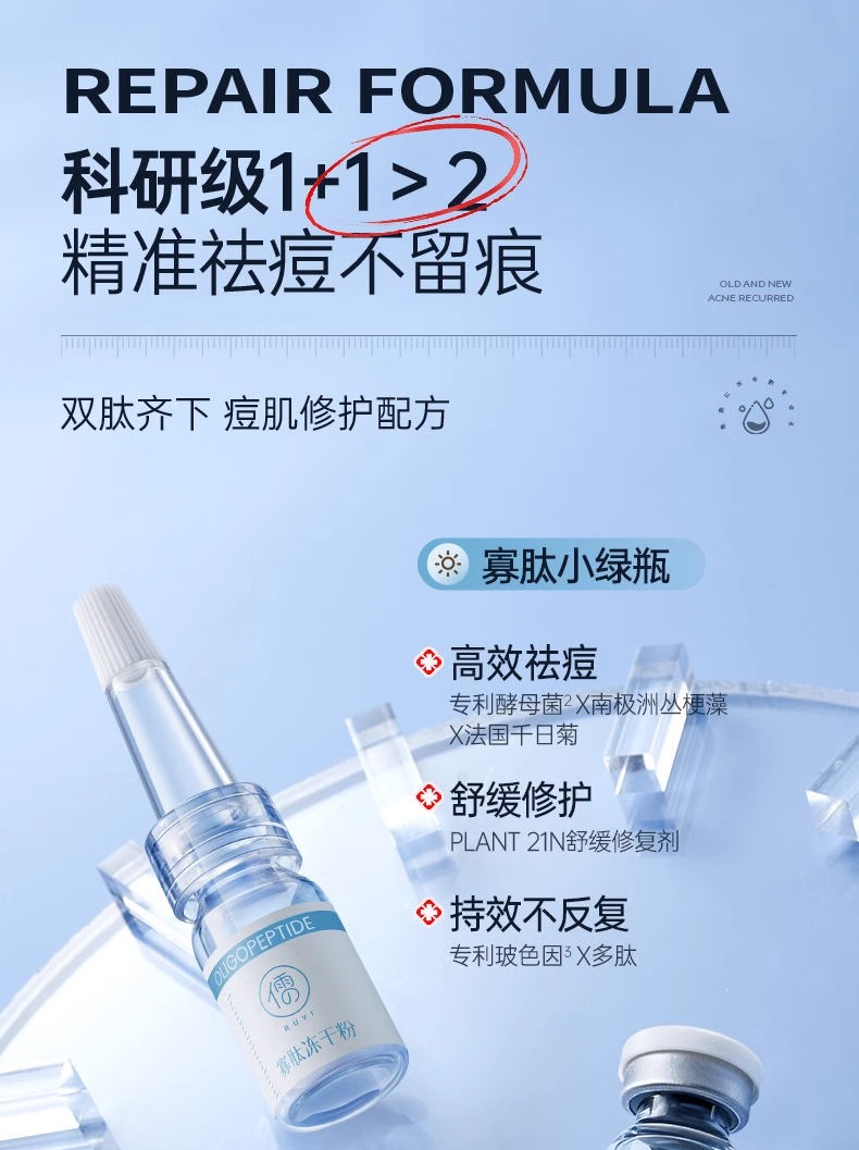 - ¥168.00 适用中度痘痘痘印⭐寡肽蓝铜肽冻干粉12支*2盒+水杨酸面膜25ml*3片