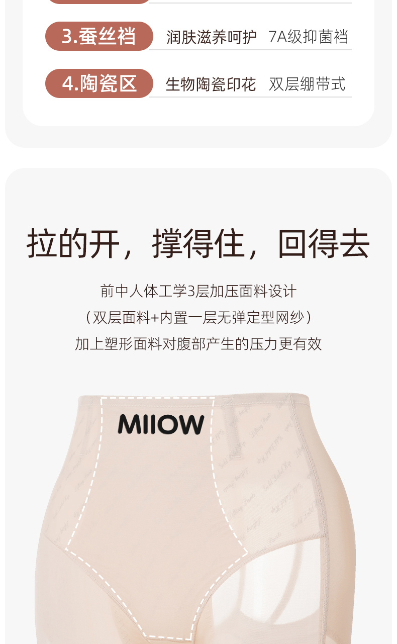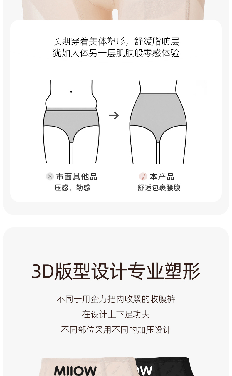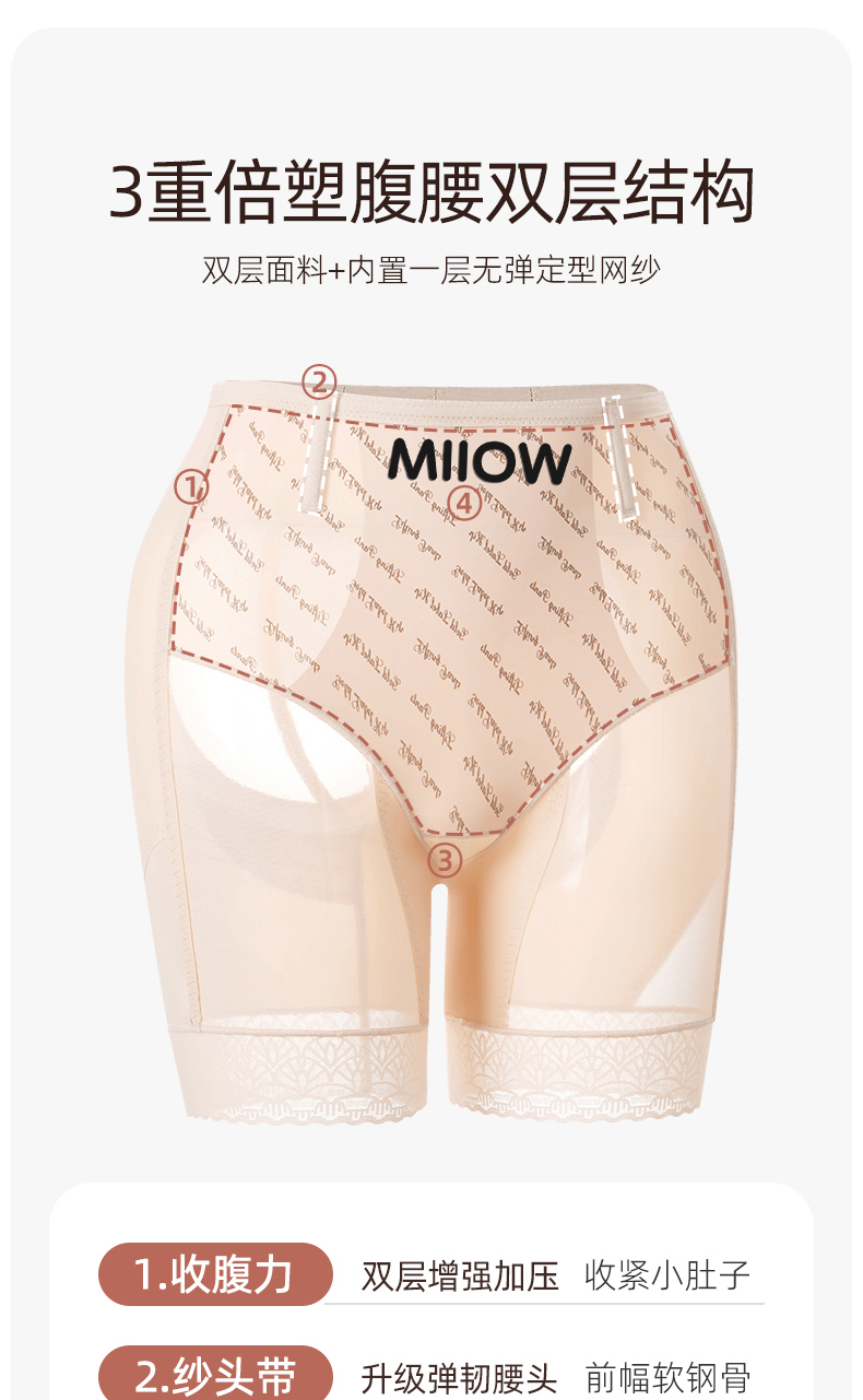 猫人高腰收腹提臀内裤女美体薄款透气网纱无痕轻塑鱼骨收腰