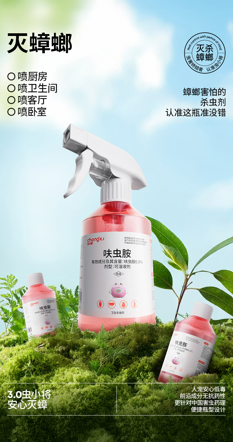 虫小将蟑螂药家用神器消灭蟑螂呋虫胺杀虫喷雾买一送一310Ml两瓶