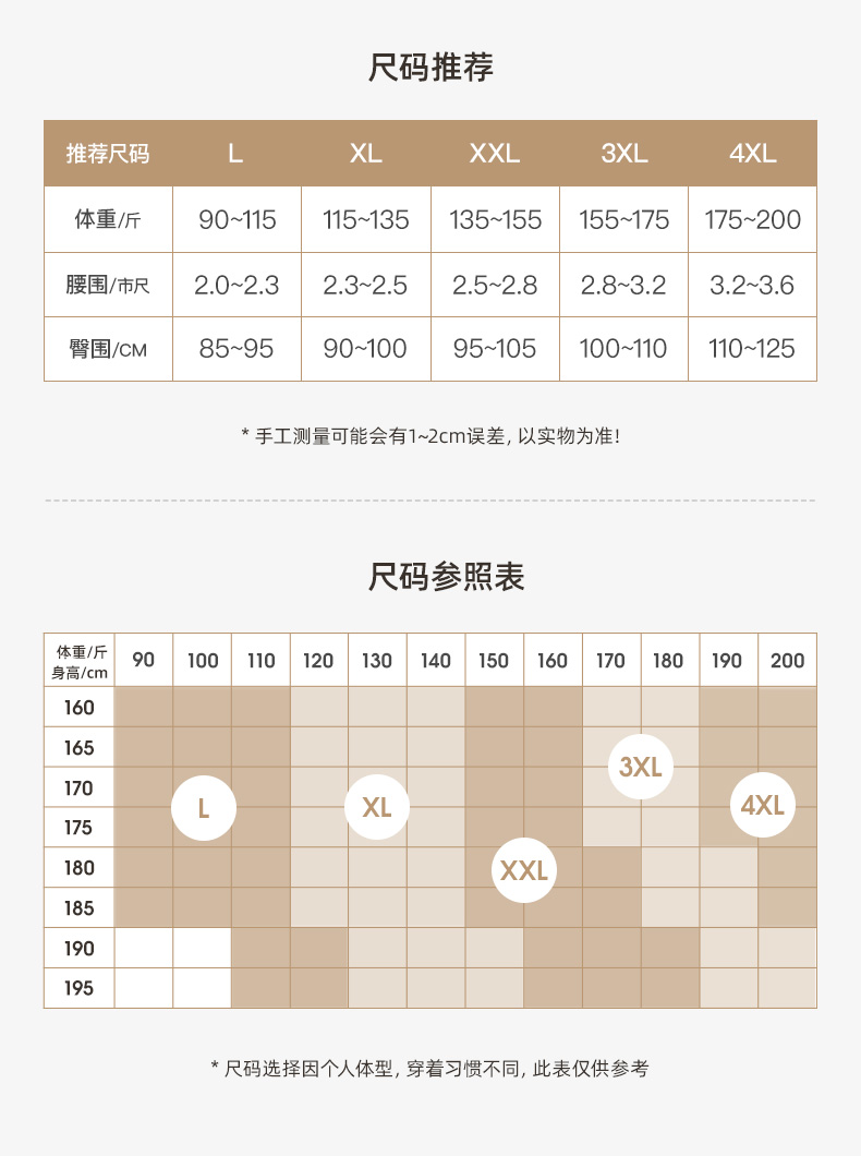 - ¥59.90天蓝+深蓝+黑色(共6条),4XL(160-185斤)