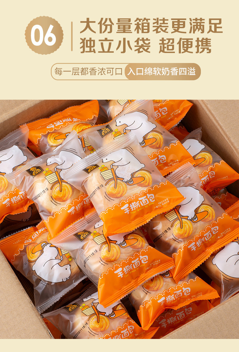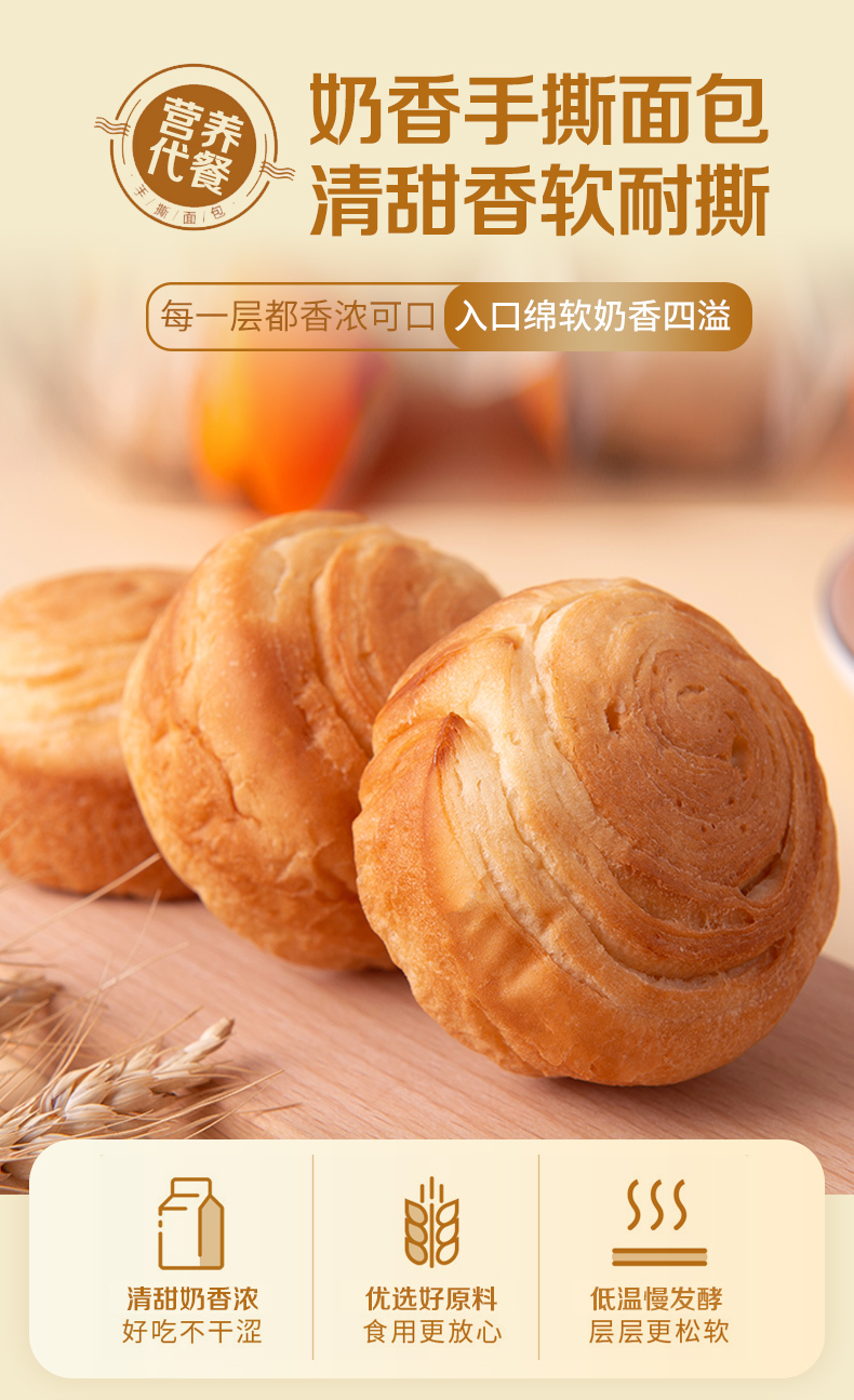 自从买了这款手撕面包,家里的下午茶时间就变得格外温馨!面包奶香味十足,每一口都能感受到浓浓的奶香在嘴里化开,真的是让人欲罢不能。而且,这款面包作为儿童早餐也非常合适,既营养又美味,孩子特别喜欢,每天早上都迫不及待地要吃。 最让人惊喜的是,这款面包的性价比超高!我选择了30个的规格,才花了19.9元,真的是物超所值。每个面包都是独立包装,干净卫生,携带也方便,无论是出门游玩还是上班上学,都可以随身带上几个,随时补充能量。 手撕面包的口感松软,甜度适中,不会过于甜腻,连我这个平时不太爱吃甜食的大人都很喜欢。看到孩子吃得开心,我也特别满足。而且,这款面包在社交媒体上也相当火爆,作为网红零食送给朋友或同事也很合适,他们吃了都赞不绝口。 总的来说,这款手撕面包无论是从口感、营养、价格还是包装上,都让我非常满意。已经推荐给身边的亲朋好友了,相信他们也会爱上这款美味的面包!下次还会继续回购的!