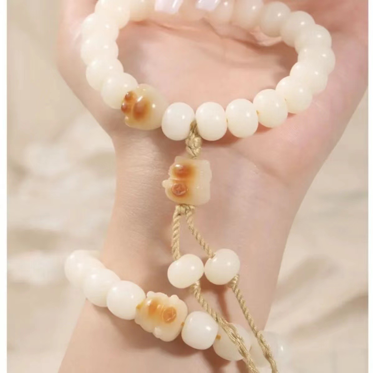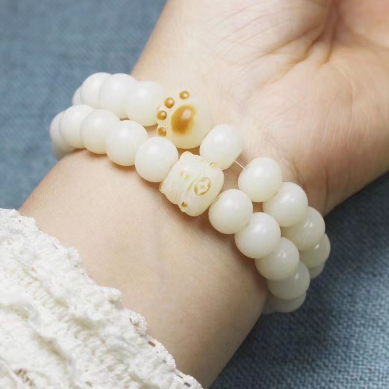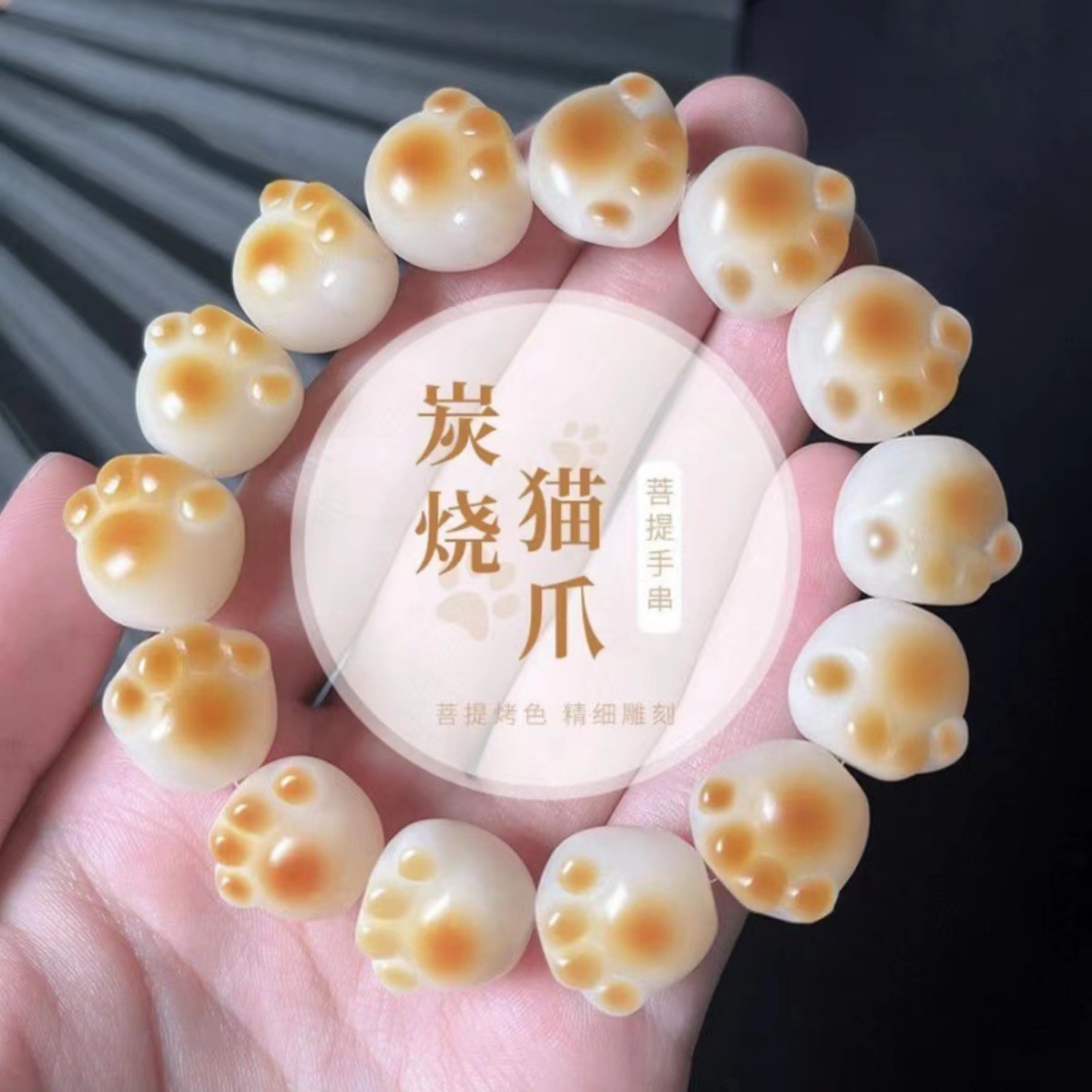 炭烧猫爪白玉菩提手串女正品散珠天然盘玩绕指柔文玩手串雕