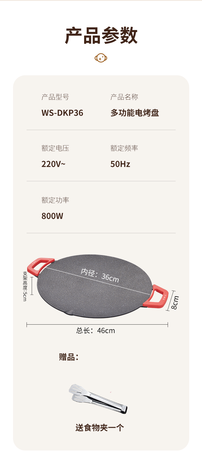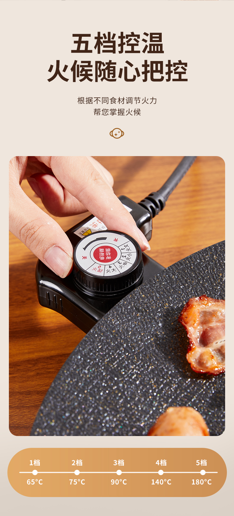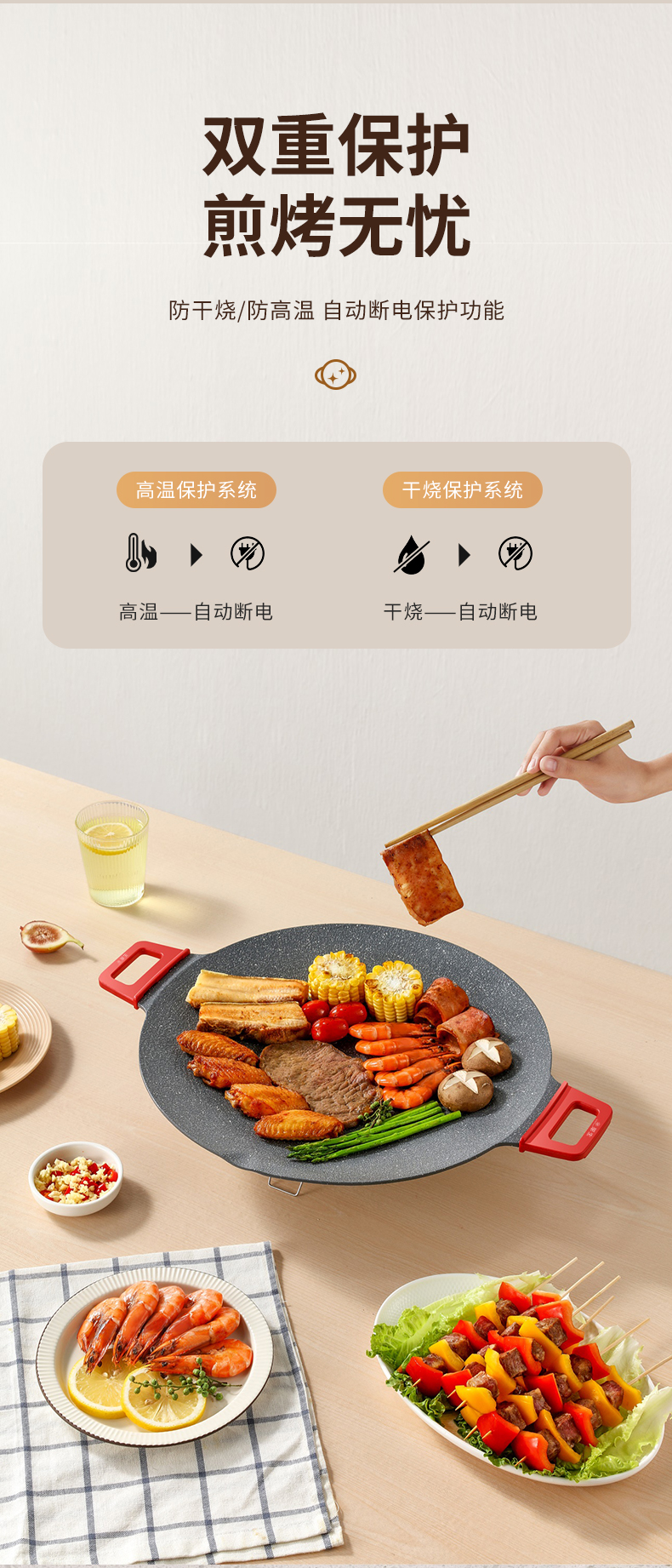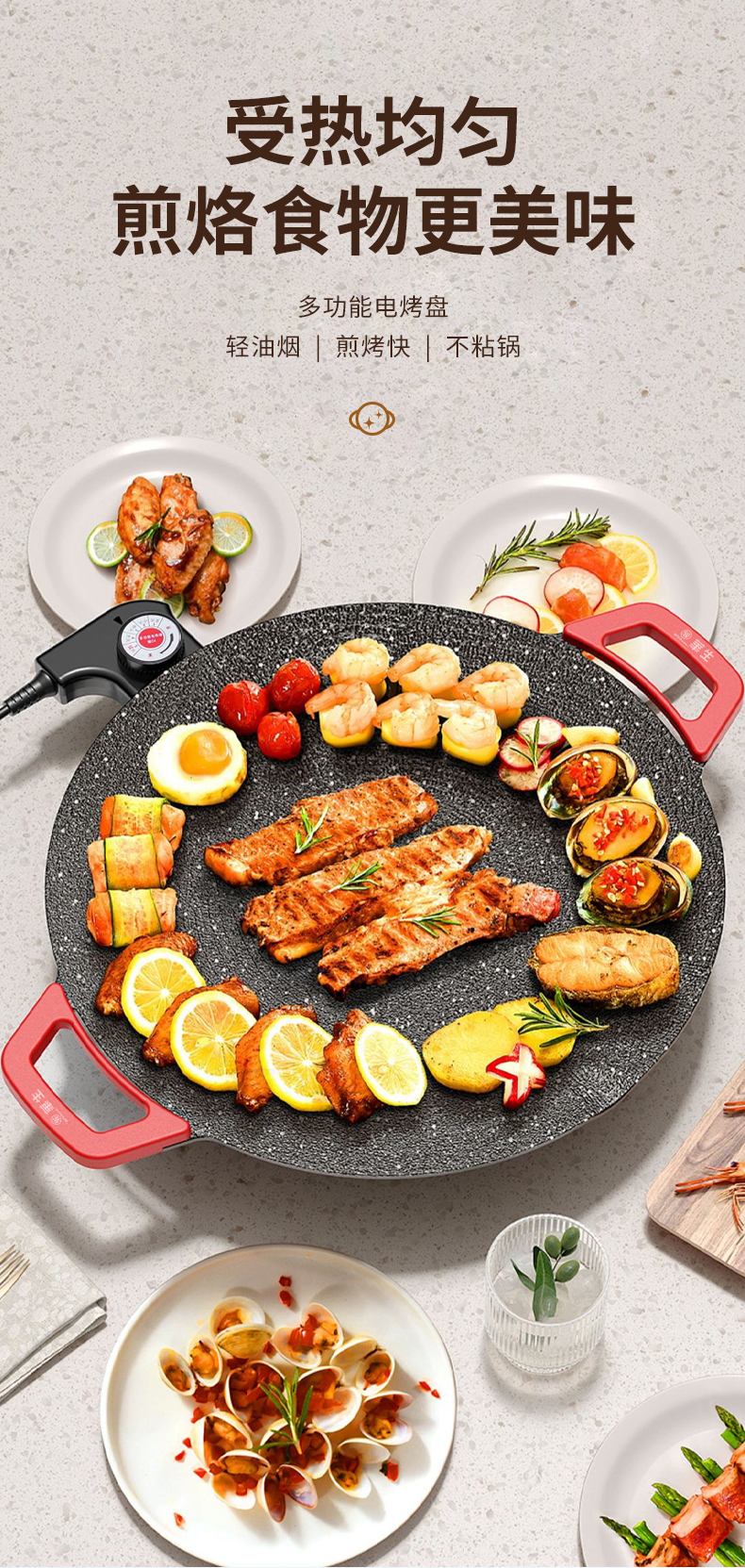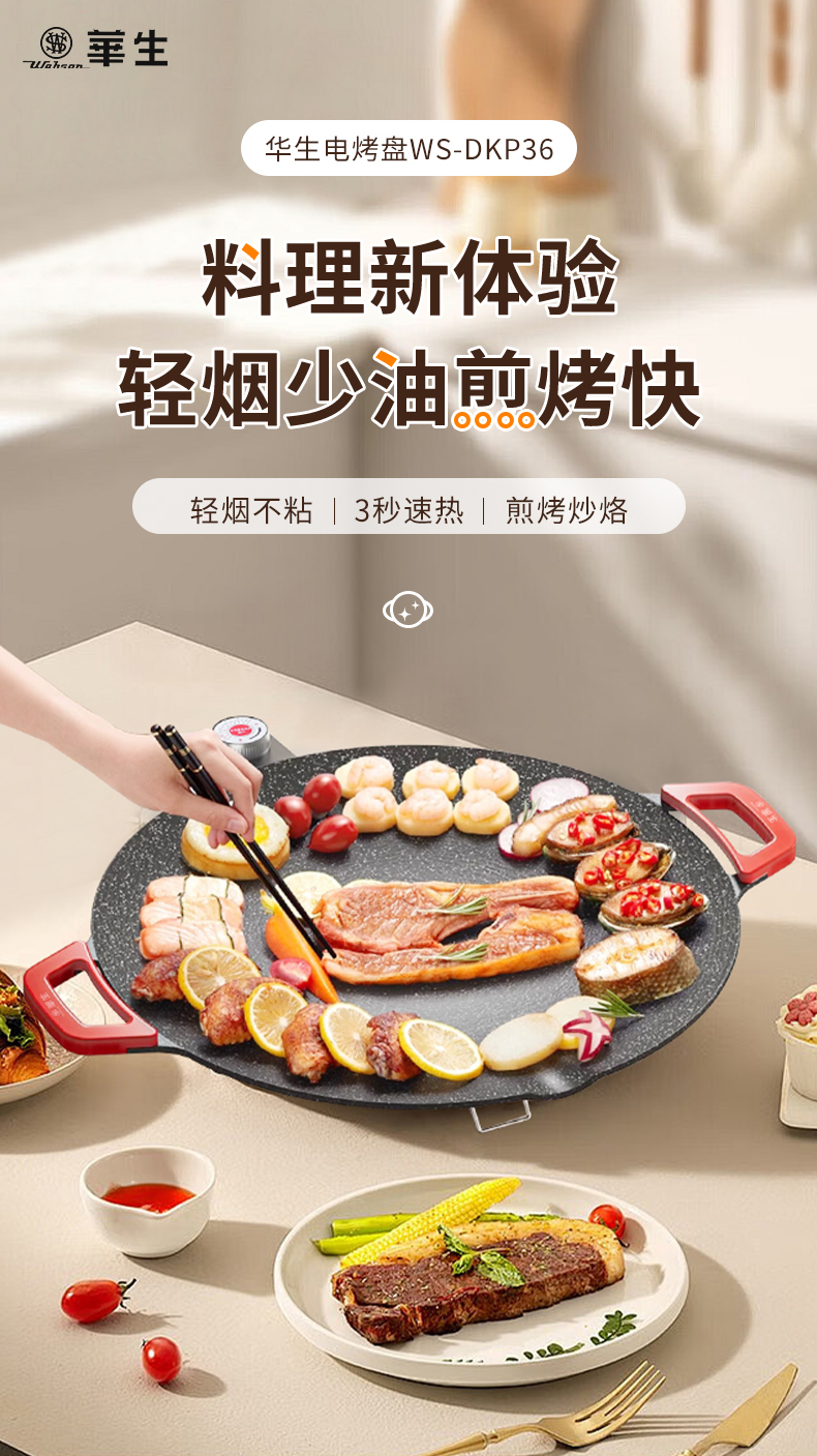 wahson/华生多功能物理不沾轻烟少油煎烤烙家用大功率电烤盘DKP36