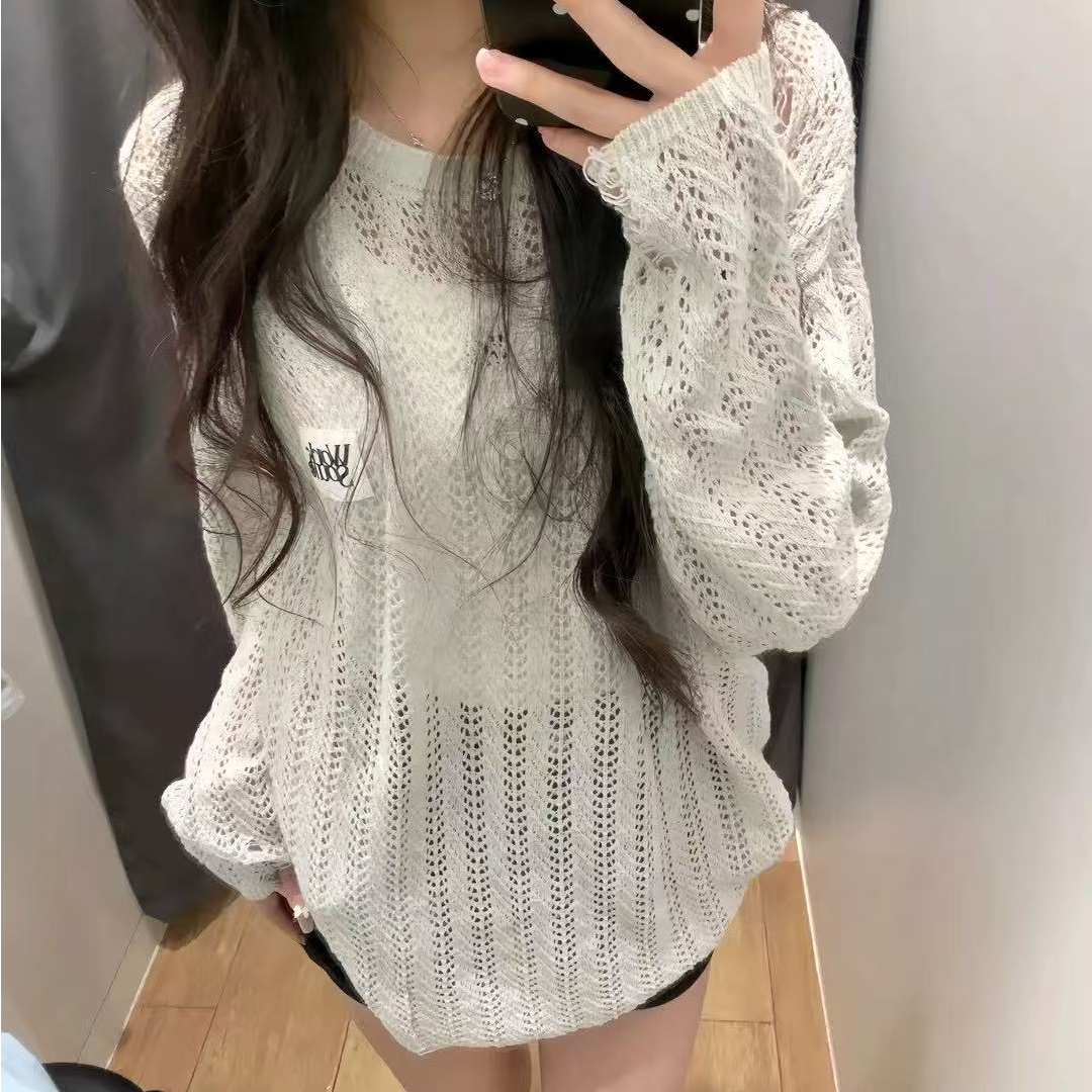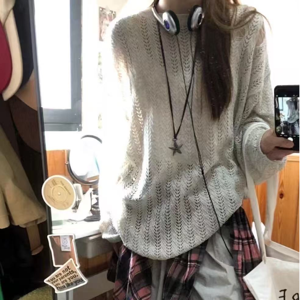 韩系镂空时尚罩衫防晒针织衫女宽松慵懒风长袖透气休闲上衣夏季