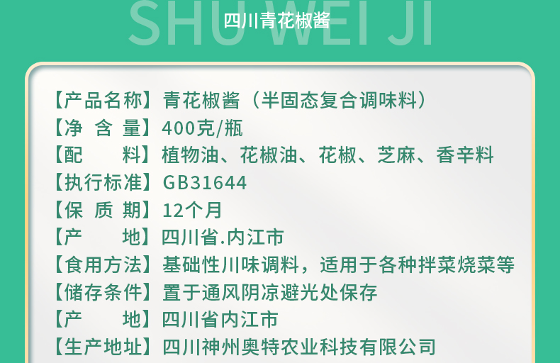 蜀味集青花椒酱400g 特麻麻油花椒油 火锅烧烤拌面酱凉拌菜调料