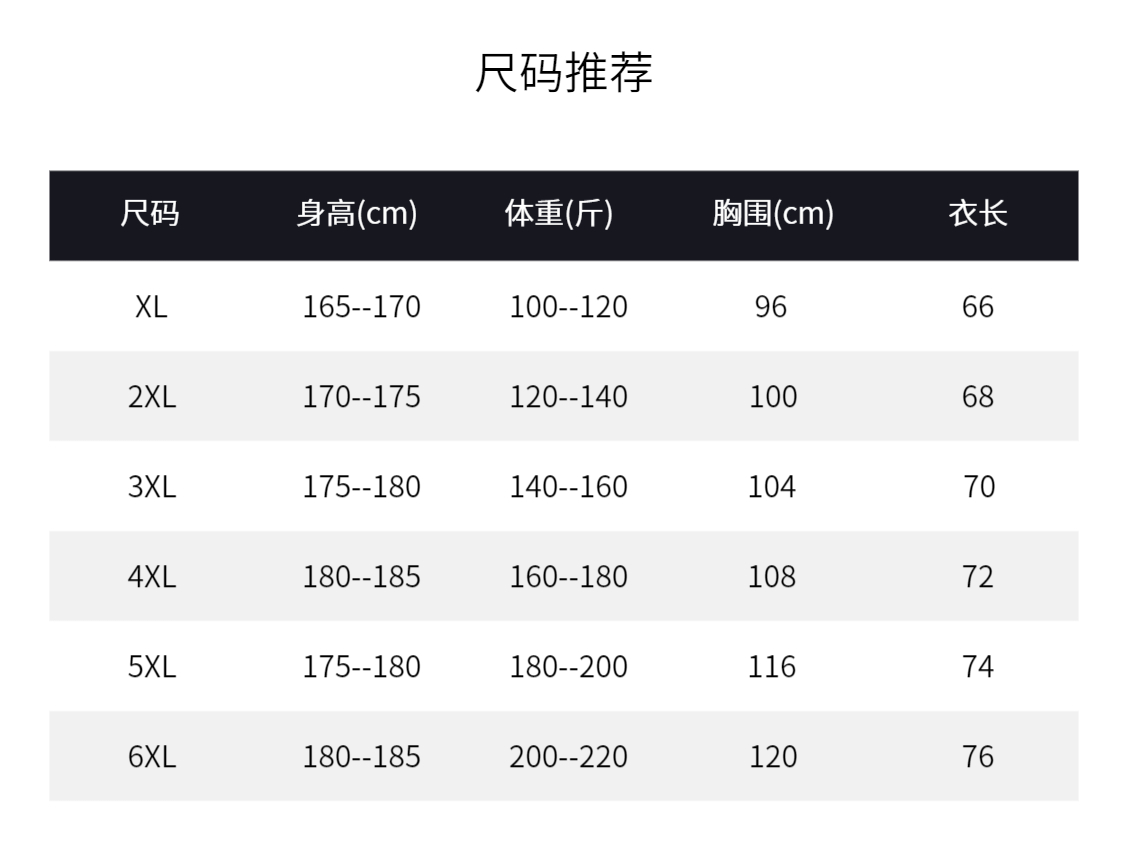 - ¥89.80白+黑,5XL(180斤-200斤)