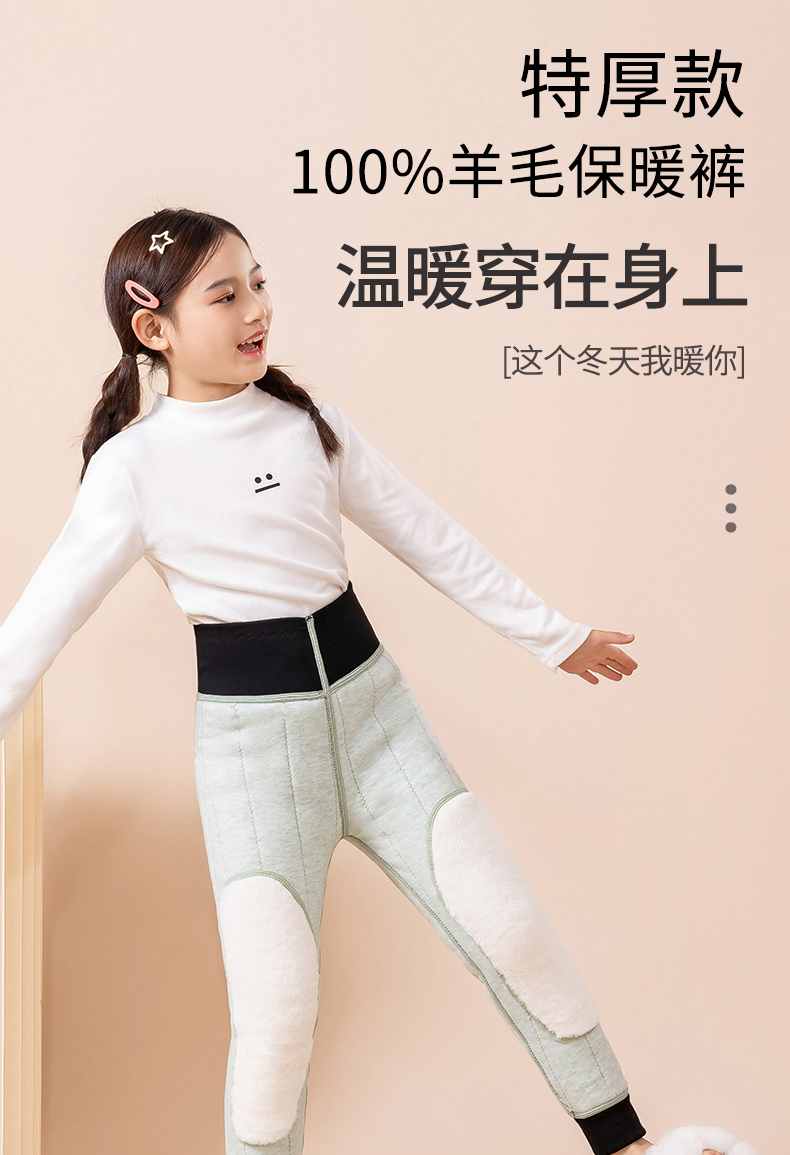 - ¥48.00女童特厚100羊毛绿色(新款),65码裤长建议身高105-110