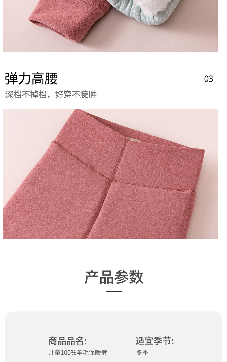 - ¥48.00女童特厚100羊毛裤粉色(新款),65码裤长建议身高105-110