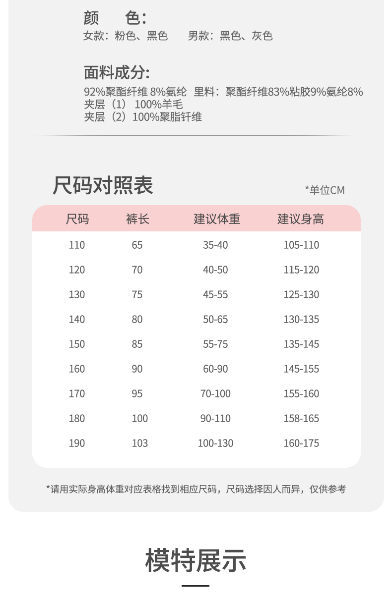 - ¥54.00男童特厚100羊毛裤(新款),80码裤长建议身高135-140cm