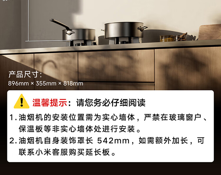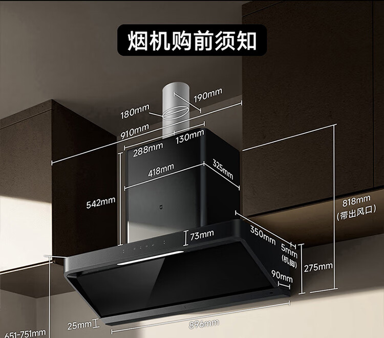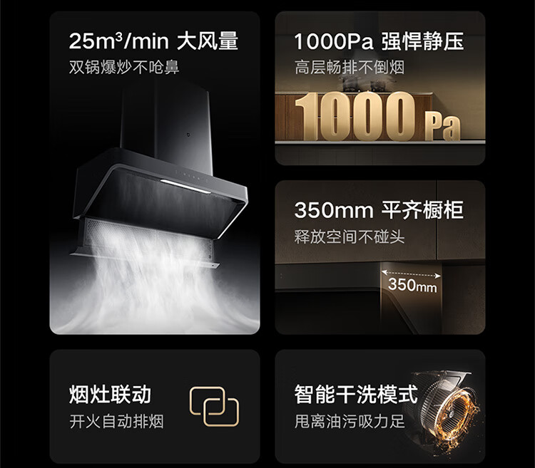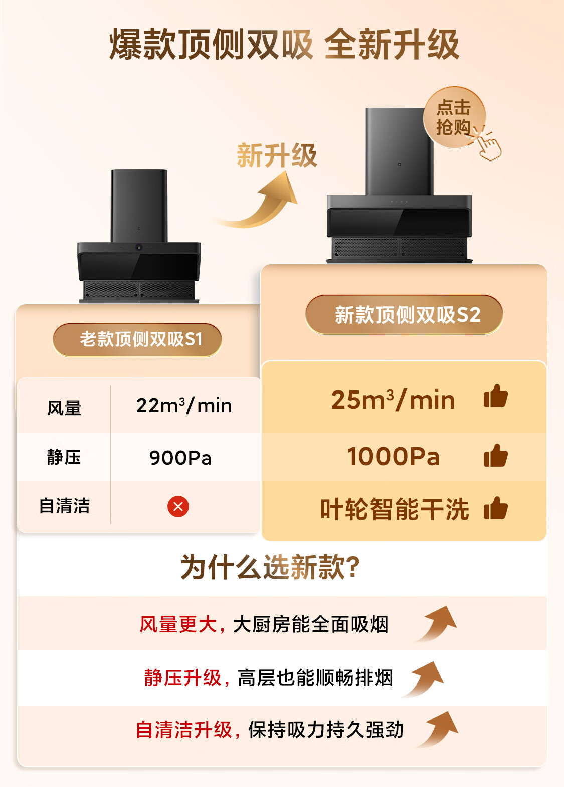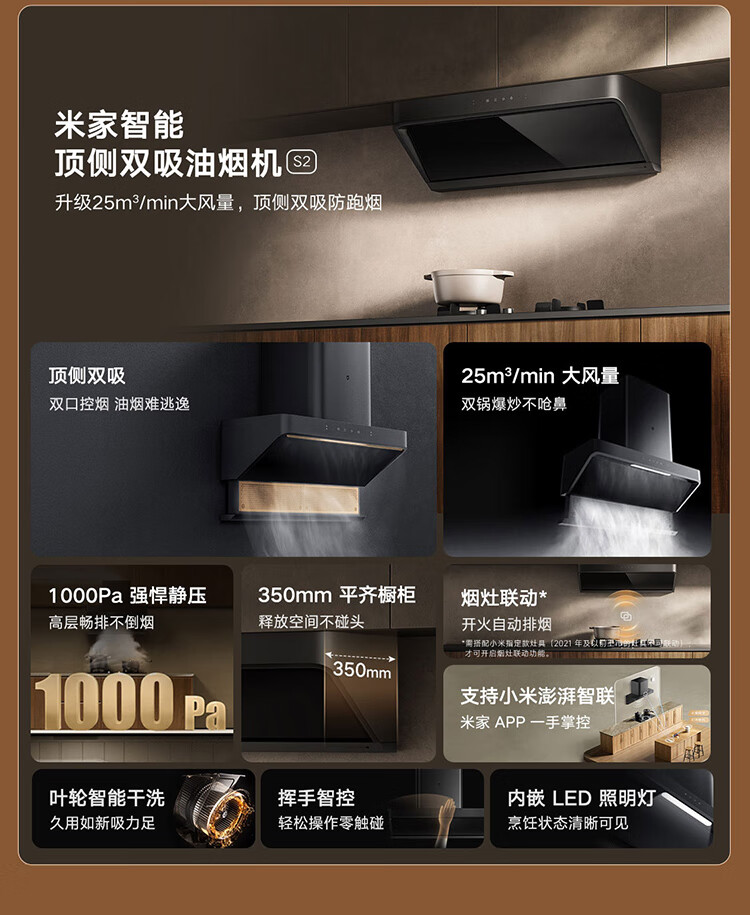 【国家补贴】小米米家智能顶侧双吸油烟机S2 25大吸力升降平齐橱柜