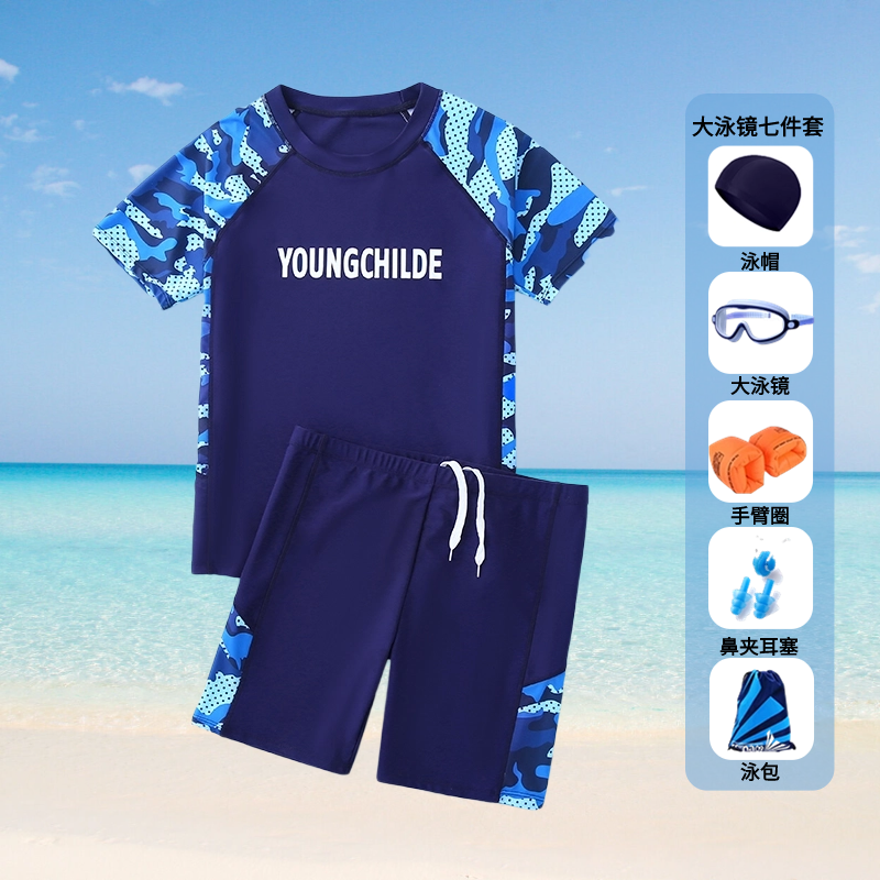 - ¥69.90迷彩蓝小泳镜4件套(店铺热卖),7XL高165重105-130