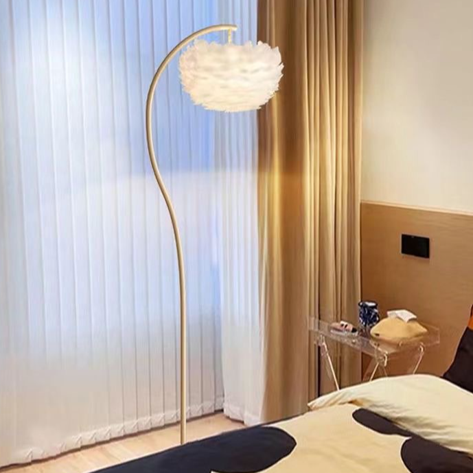 - ¥95.90北欧轻奢豪华落地灯(S型)白杆+羽毛罩子,无极遥控款(护眼)