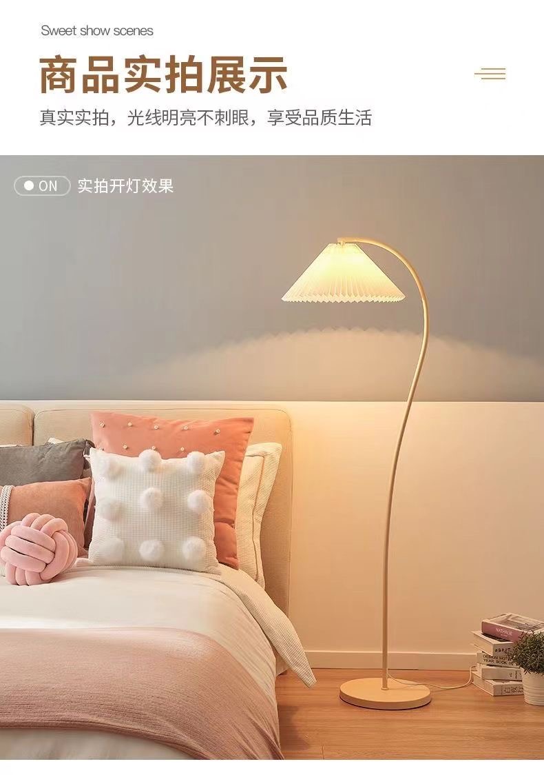 - ¥72.90北欧轻奢豪华落地灯(S型)白杆+百褶罩子,无极遥控款(护眼)