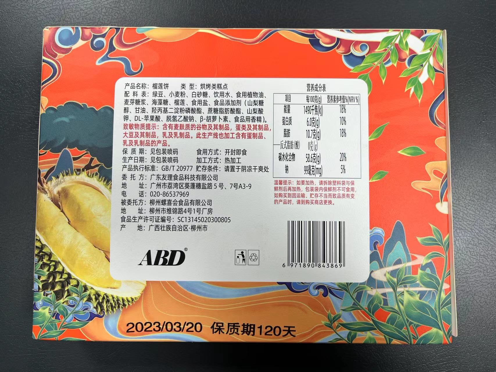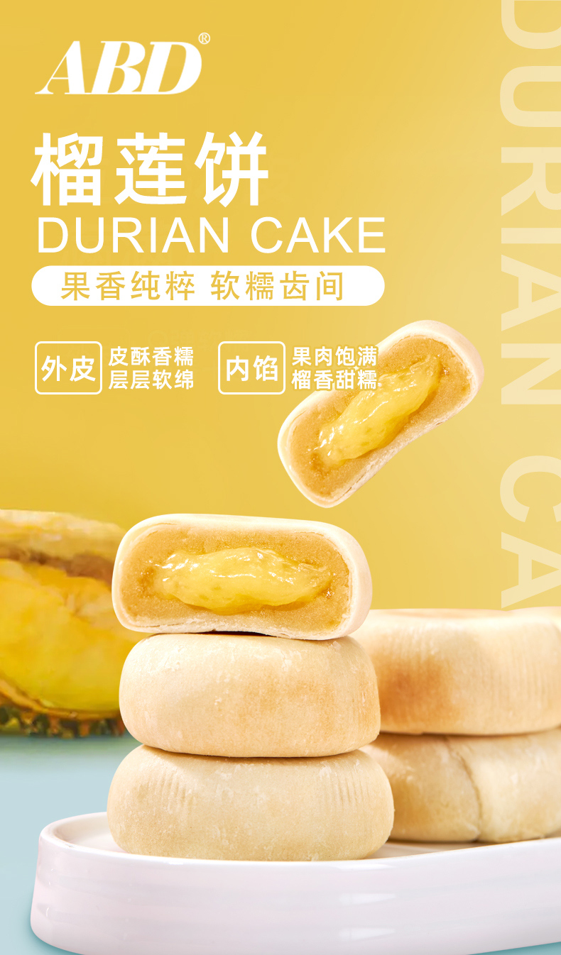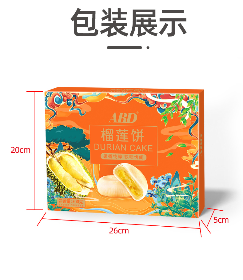 ABD礼盒装猫山王榴莲饼传统中式饼类糕点充饥解馋小食品送礼300克