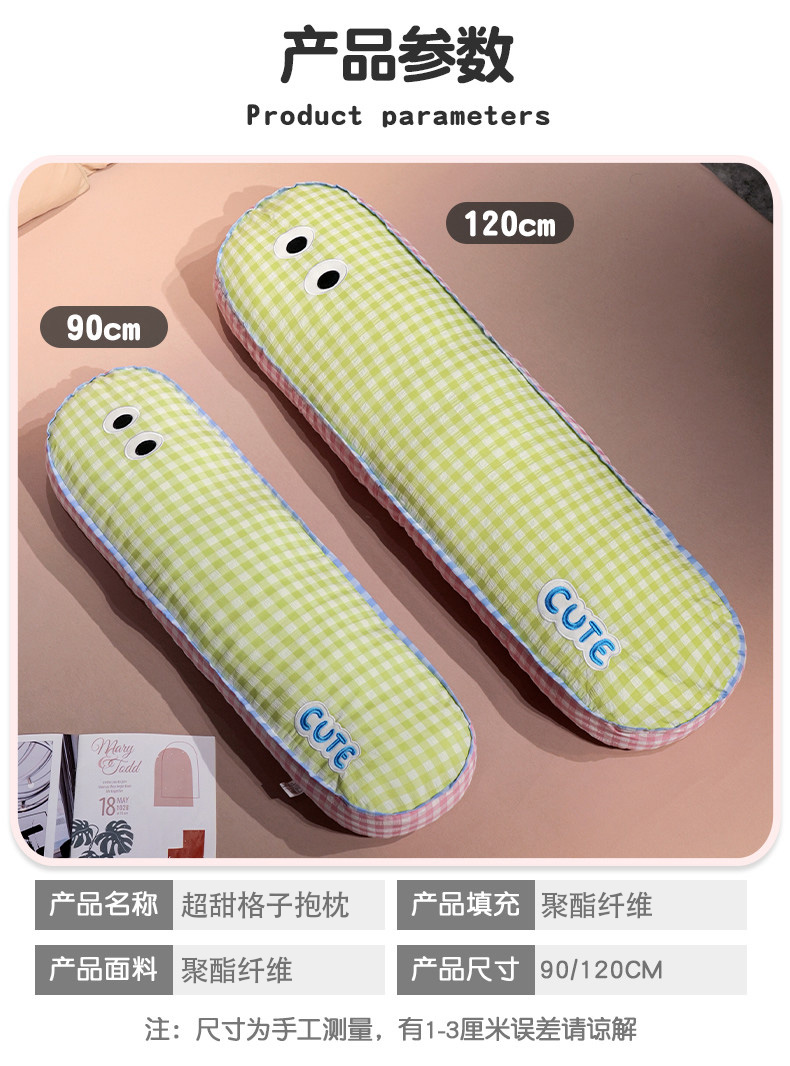 - ¥49.90超甜格子抱枕-绿色-120cm【有内胆可拆洗】