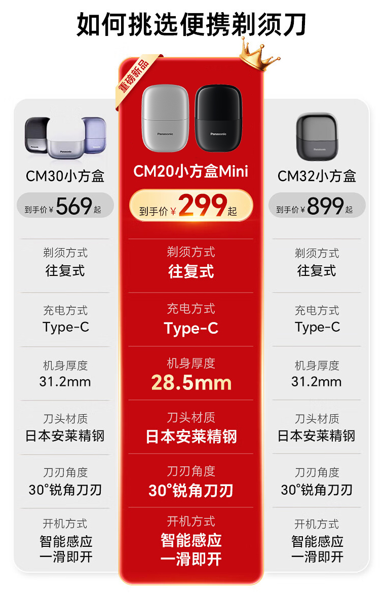 - ¥299.00 往复式剃须刀+金色礼袋,雪花银(官方),小方盒mini