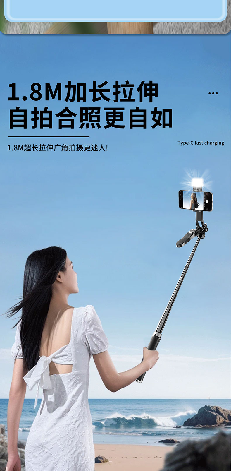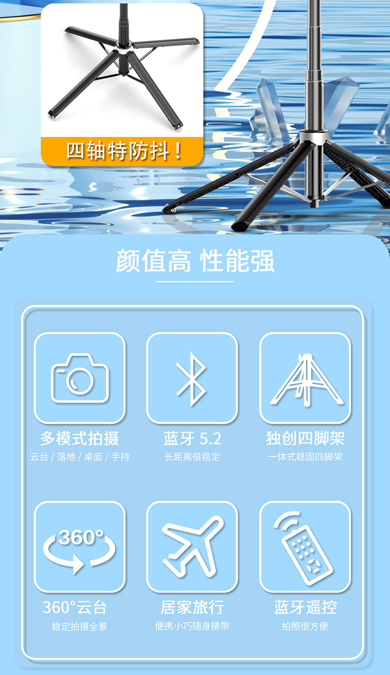 1.8米自拍杆四脚架自拍神器手机360度手持落地拍摄直播支架通用