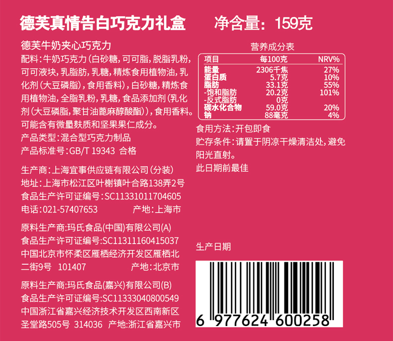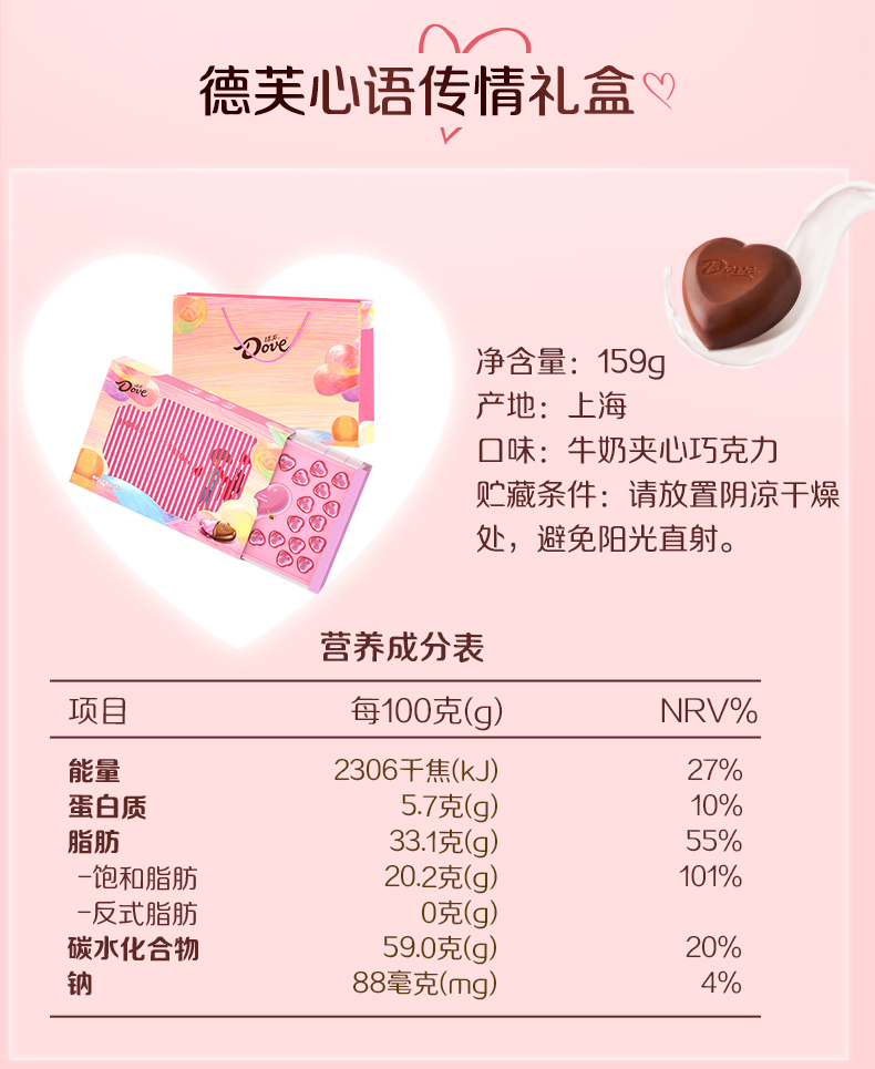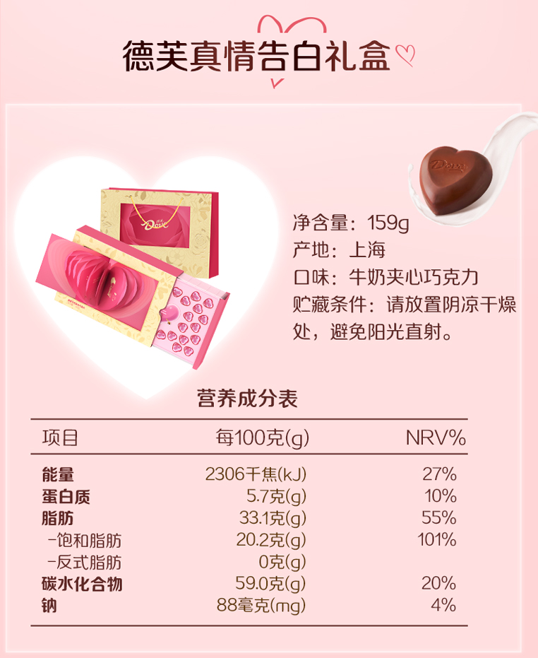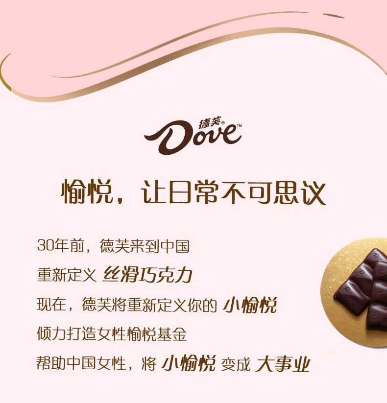 价格实惠:经济实惠的选择,可以作为小礼物送给亲朋好友或同事,增添节日的喜庆氛围5品牌信誉保证:德芙是一家知名的巧克力品牌,其产品一直以来都具有高品质和口感。6、口感:经典口味【牛奶夹心巧克力】纵享丝滑。