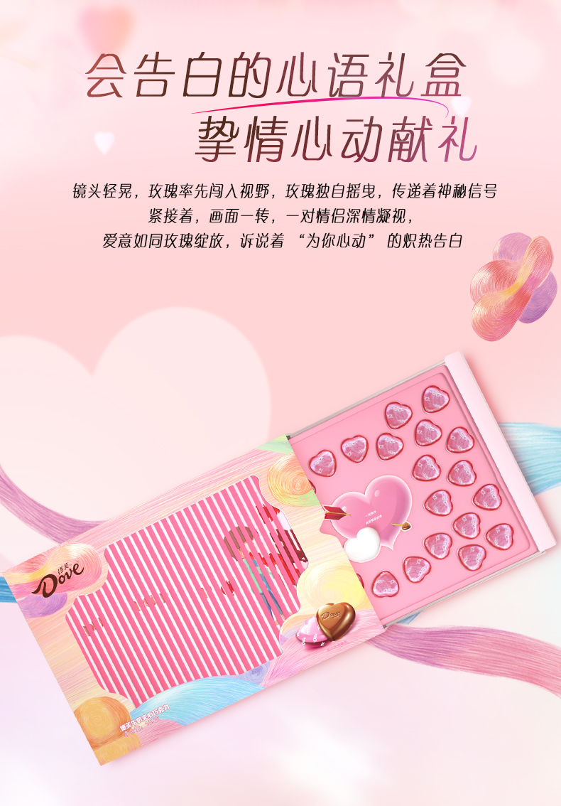 、精美的礼盒设计:采用【心语】元素设计,充满了浓厚的浪漫氛围,节日以及平时的浪漫之礼。心语心型巧克力:每个巧克力都是心型的,适合情侣、家人或朋友之间互赠或表达爱意,2