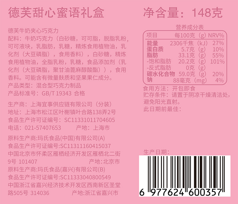 - ¥39.90怦然心动 礼盒159g*1盒