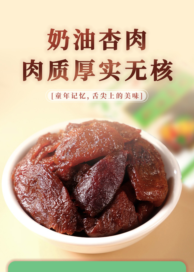 一直怀念小时候吃过的那些小零食,这次在网上偶然发现了这款混合口味的杏肉蜜饯,真是让我惊喜不已!打开包装的那一刻,熟悉的酸甜味道扑面而来,瞬间勾起了我满满的童年回忆。 这款胃康杏肉甘草杏奶油杏蜜饯果脯,口感丰富多样,每一颗都饱满多汁,酸甜适中,吃起来既开胃又解馋。特别是混合口味的设计,让我一次性就能尝到多种不同的风味,真是太满足了! 而且,卖家提供的包装规格也很贴心,从10包到50包不等,可以根据个人需求自由选择。我这次买了30包的规格,价格也很实惠,平均每包才不到0.4元,真是性价比超高! 物流也很给力,下单后很快就收到了货。包装严实,没有破损,每包都是独立小包装,方便携带和分享。无论是自己吃还是送给朋友,都是不错的选择。 总之,这款杏肉蜜饯果脯无论是口感、品质还是价格,都让我非常满意。已经推荐给身边的朋友们了,希望大家也能品尝到这份来自西北的美味和童年的快乐!