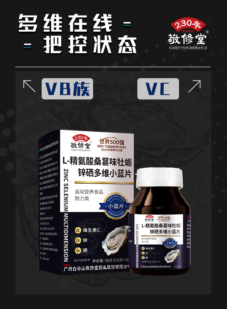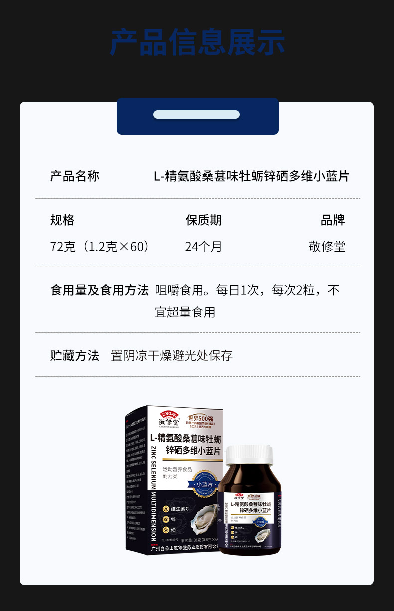 敬修堂L-精氨酸桑葚味牡蛎锌硒多维小蓝片