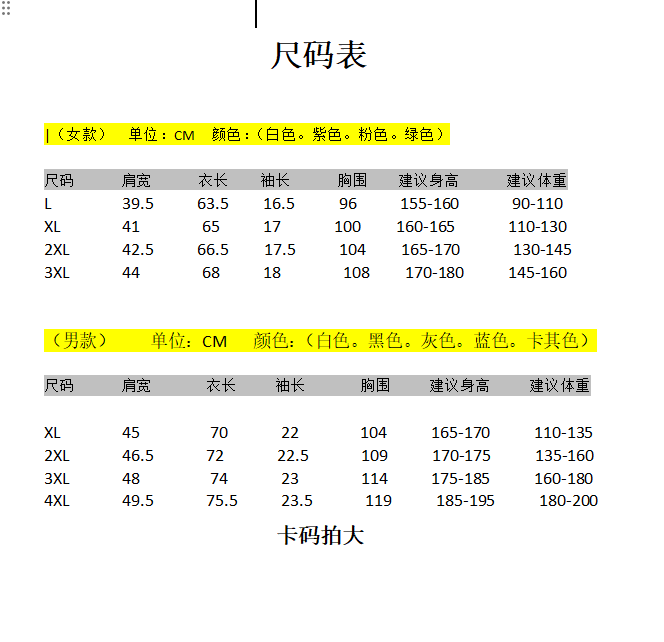 - ¥19.99白色男士,3XL(女145-160男160-180)