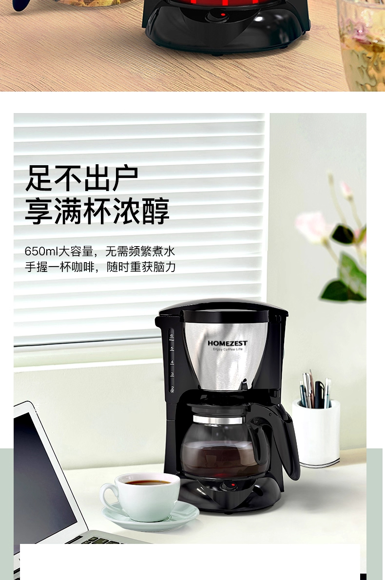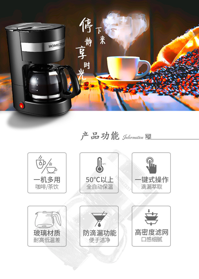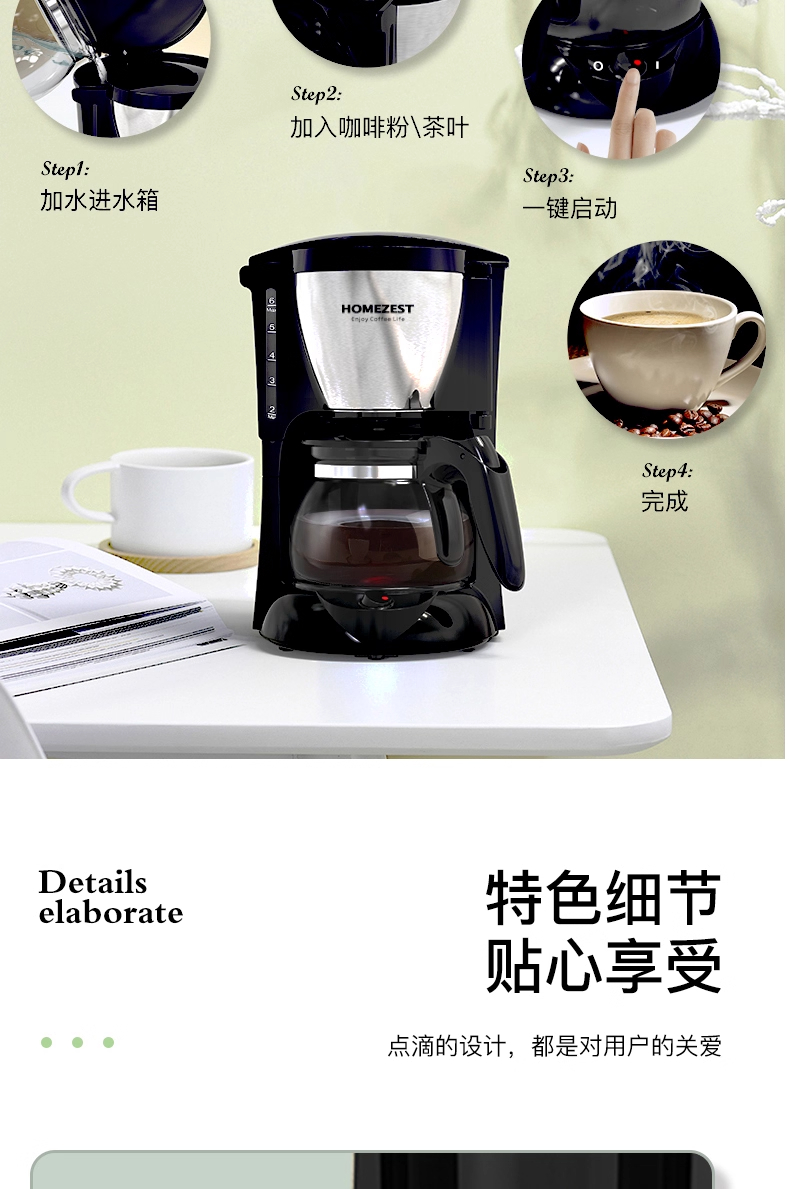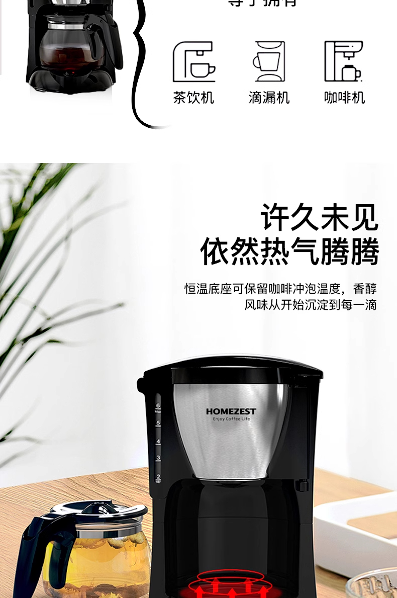 德国HOMEZEST美式咖啡机家用小型全自动滴漏式咖啡机多功能泡茶机