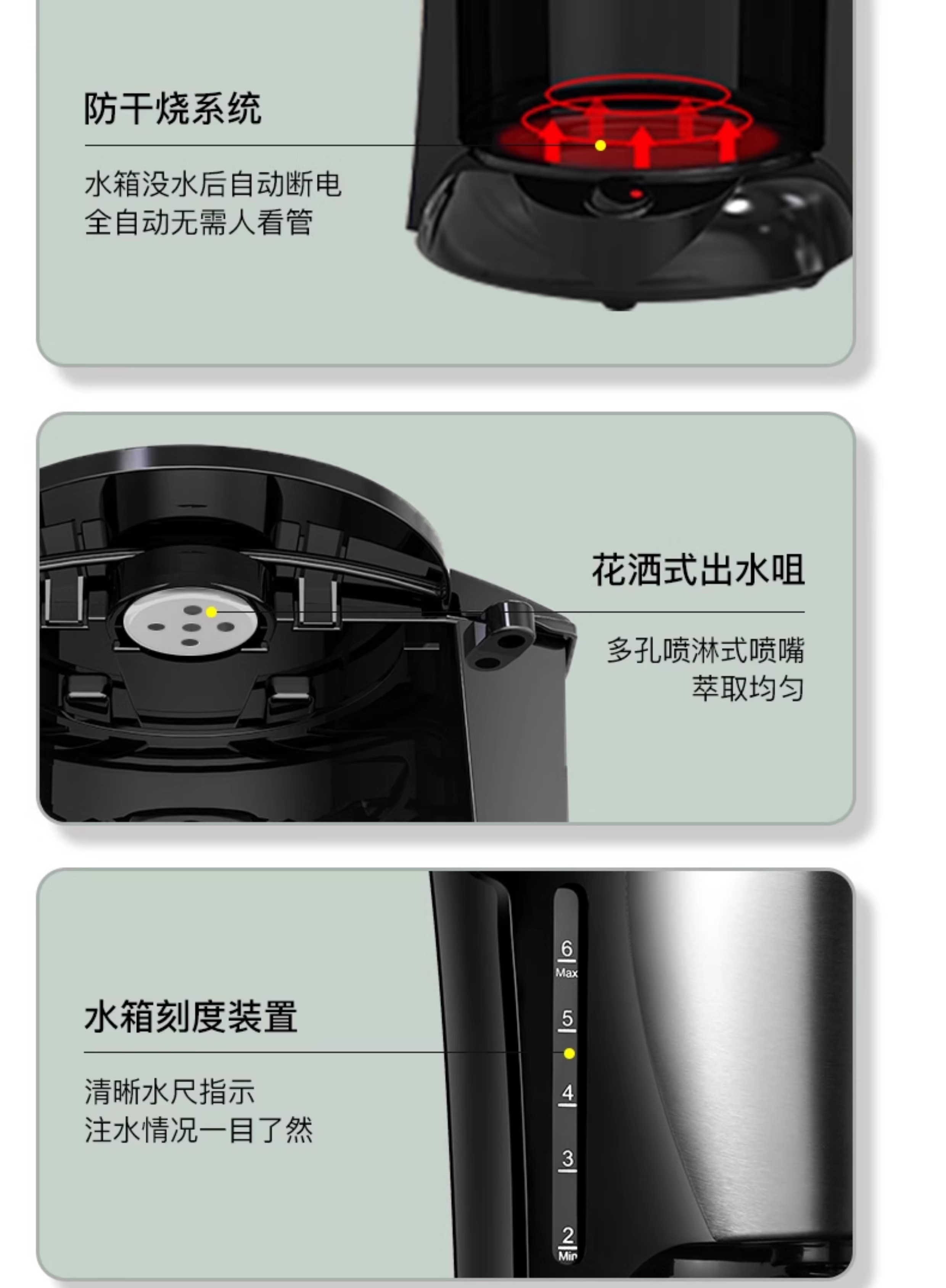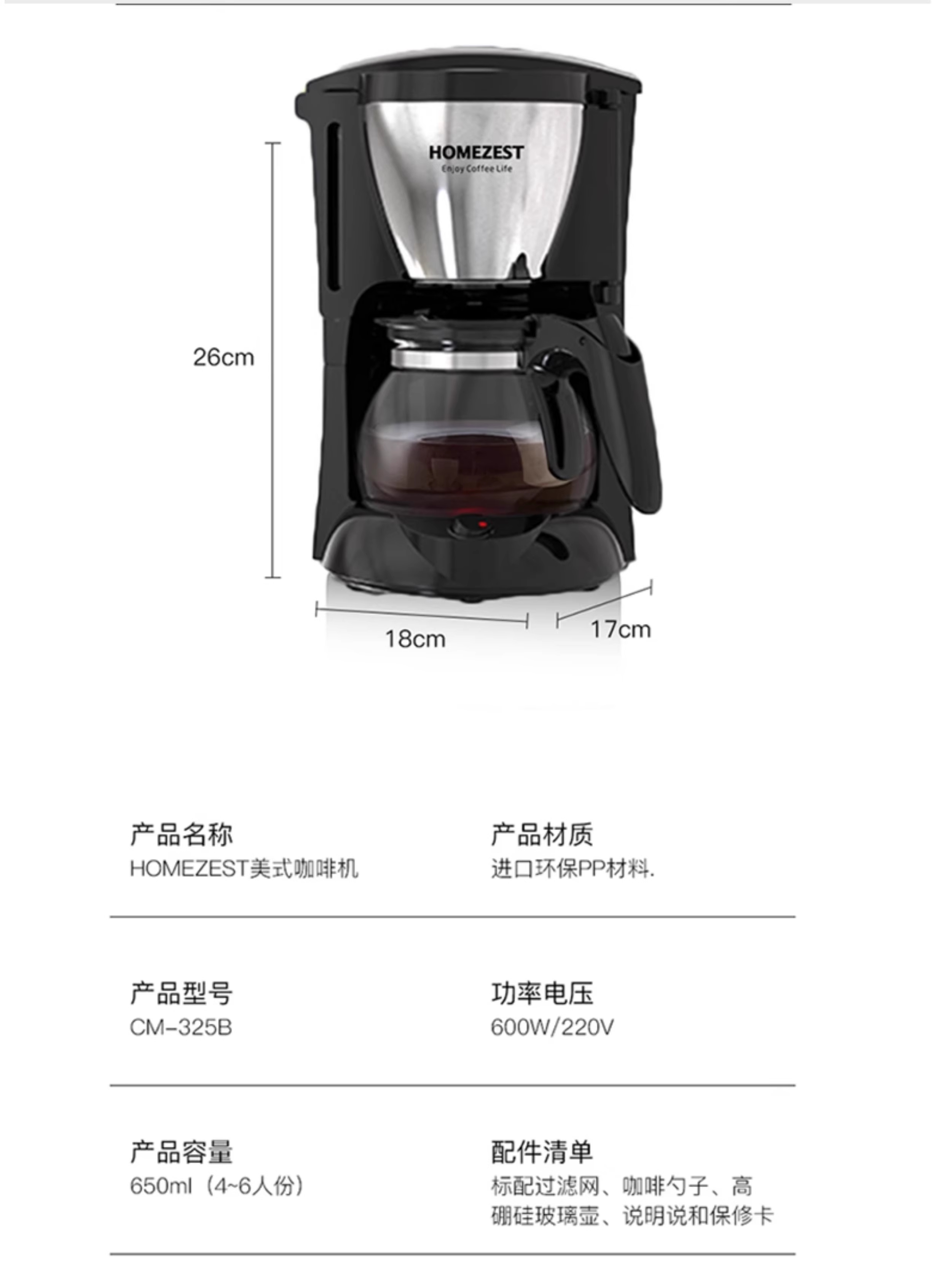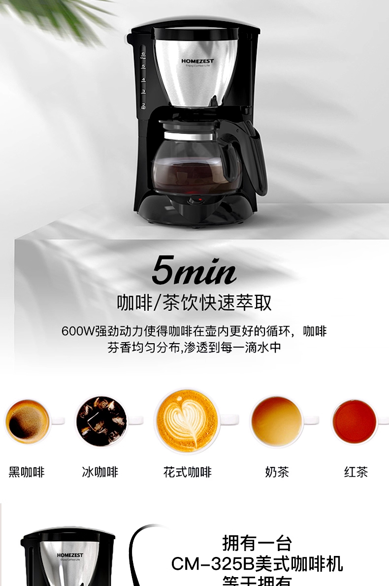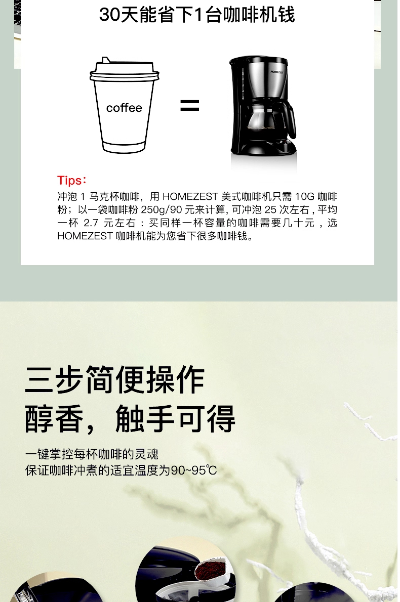 德国HOMEZEST美式咖啡机家用小型全自动滴漏式咖啡机多功能泡茶机