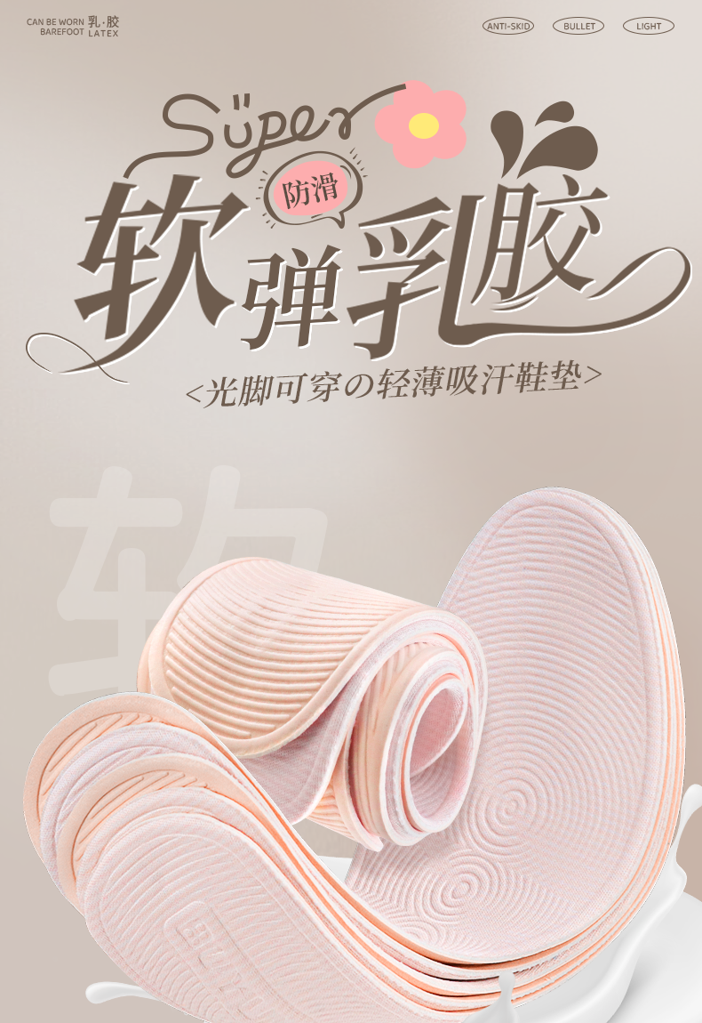 - ¥27.98 软弹乳胶光脚神器粉色-5双,35-36(可剪裁)