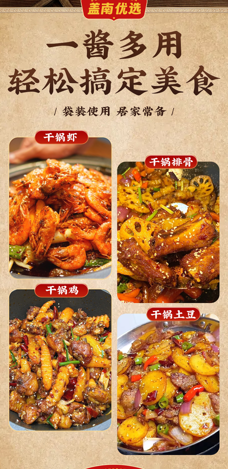 盖南优选川味麻辣干锅酱200g家用干锅酱麻辣炒料厨房调味品辣椒酱