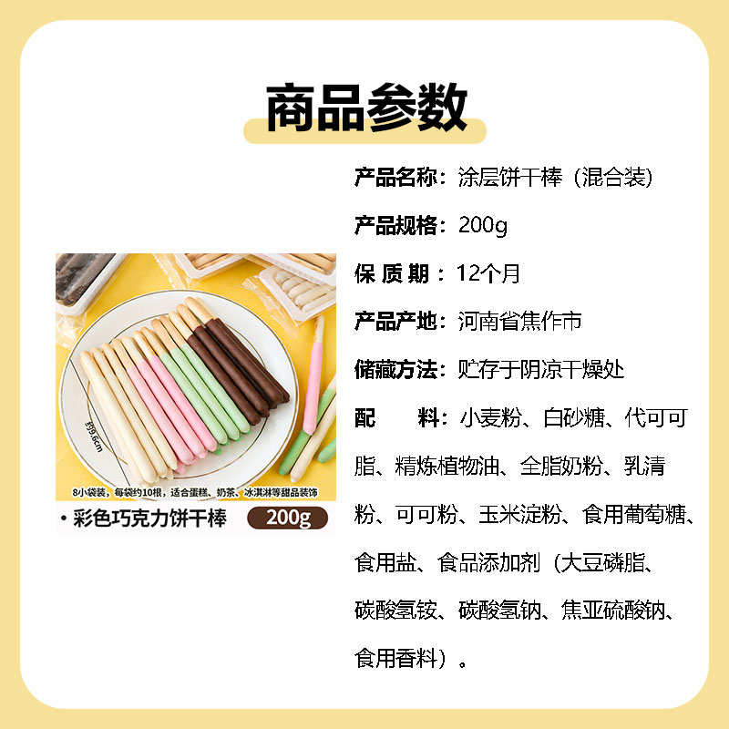 - ¥15.10巧克力味涂层棒200g【80根】,200g*1袋