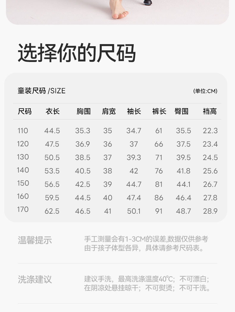 - ¥89.80晴山蓝(长袖长裤),130(125-130cm;41-45斤)
