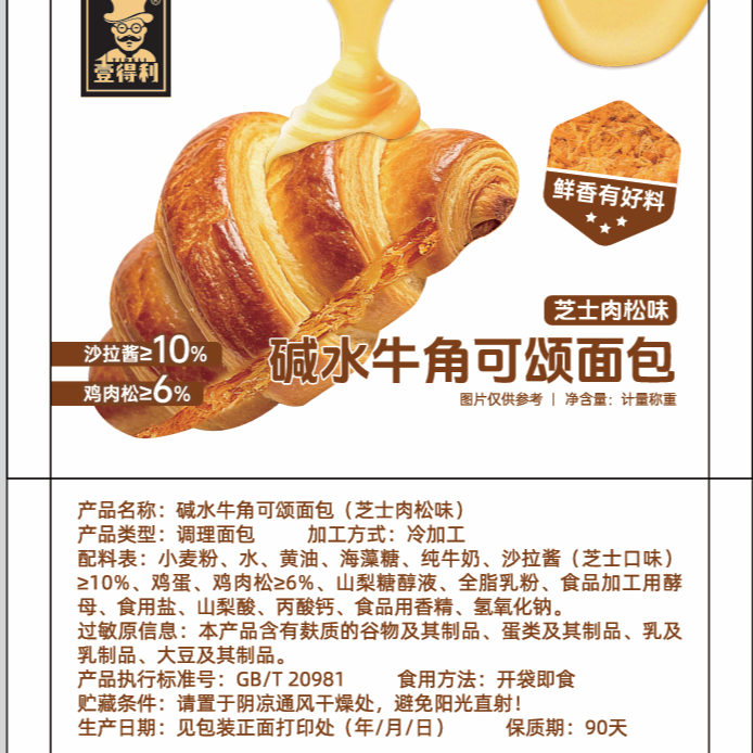 壹得利碱水夹心牛角包可颂早餐面包奶酪包网红奶包零食下午茶蛋糕